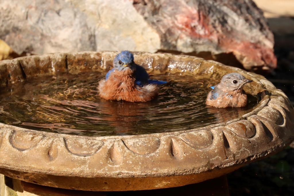 Oh they are adorable. That third image, with the two of them just soaking was so cute. The rest are cool, with the water captured ‘in flight.” I’ve only had bluebirds at my bird baths (we have two) in very cold weather, because the birdbaths are heated. Once in awhile there will be a ring of bluebirds on the edge, warming up.