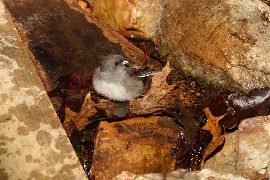 This cute little Dark-eyed Junco just arrived for the winter months and had a nice splash.