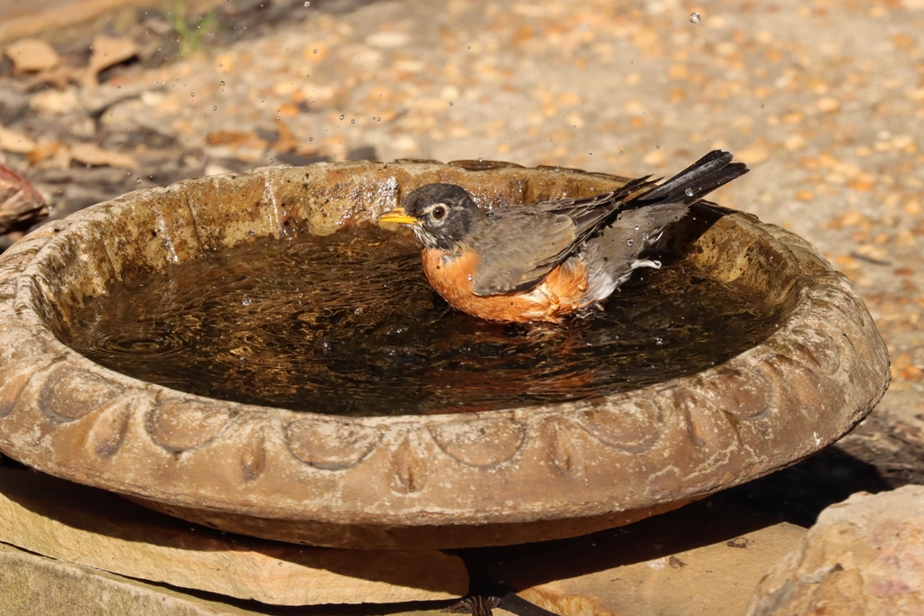 Robins have been enjoying the dish that we have at the top of the fountain…