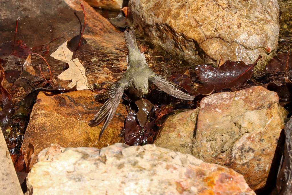 This little wild-winged bird also enjoyed an exuberant bath. I’m really not sure what kind it is. My app says it’s a Warbling Vireo, but I didn’t think they came round these parts! Whatever the id, it was fun to watch!