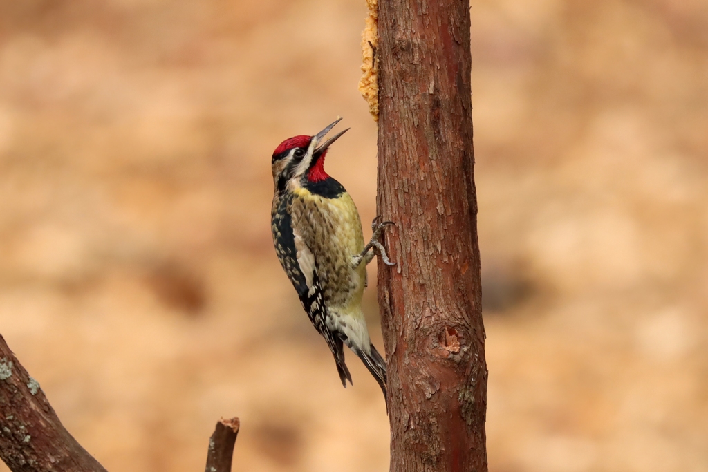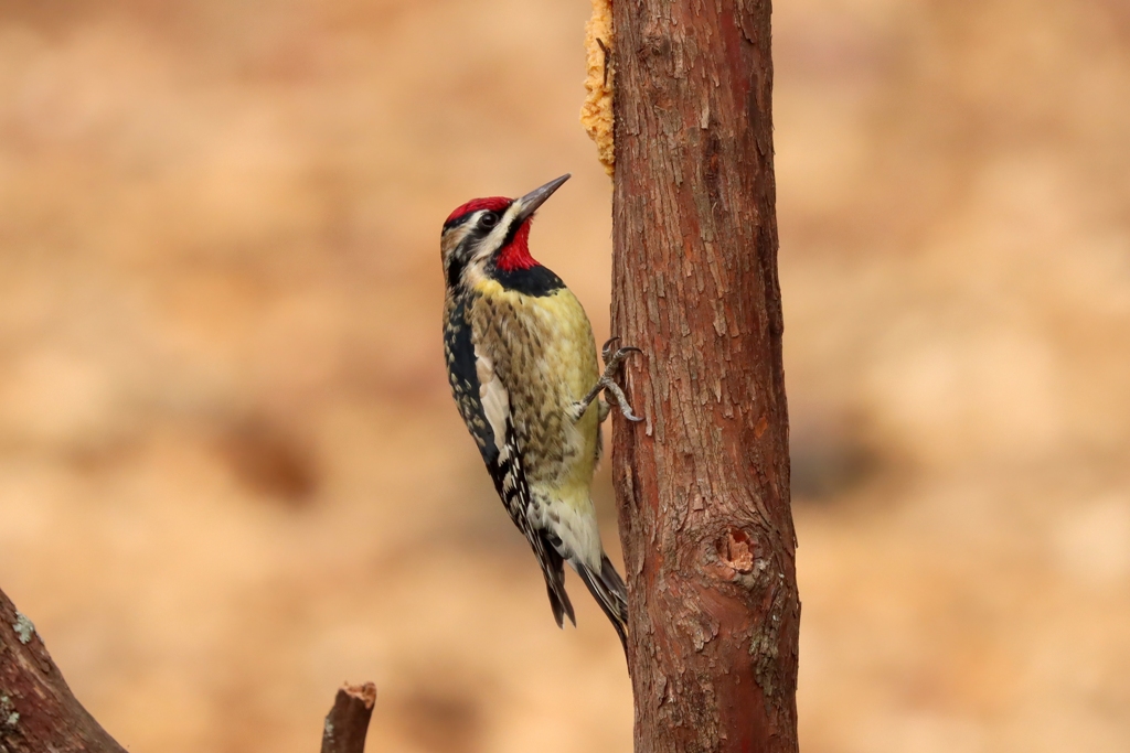 And a Yellow-bellied Sapsucker hopped on over to partake of some Bark Butter.