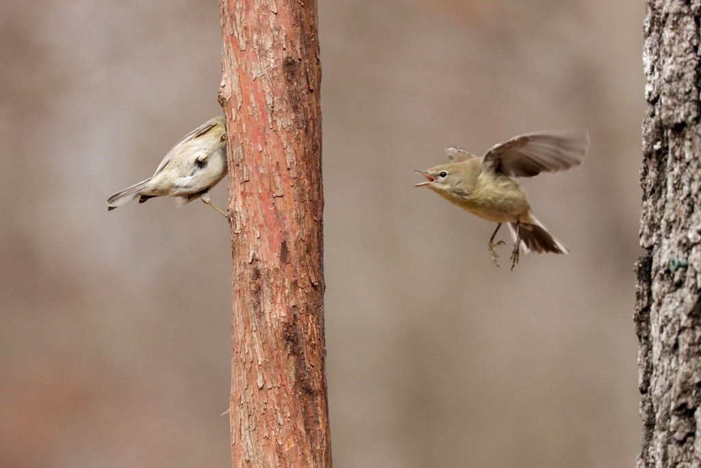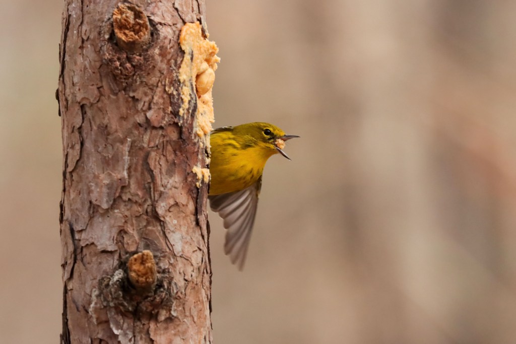 The Pine Warblers in my backyard are crazy these days! With the temps topping out below freezing, they are antsy and a wee bit aggressive. Okay, “wee bit” is an understatement! They are constantly battling one another to get to the Bark Butter – which is a great source of protein.