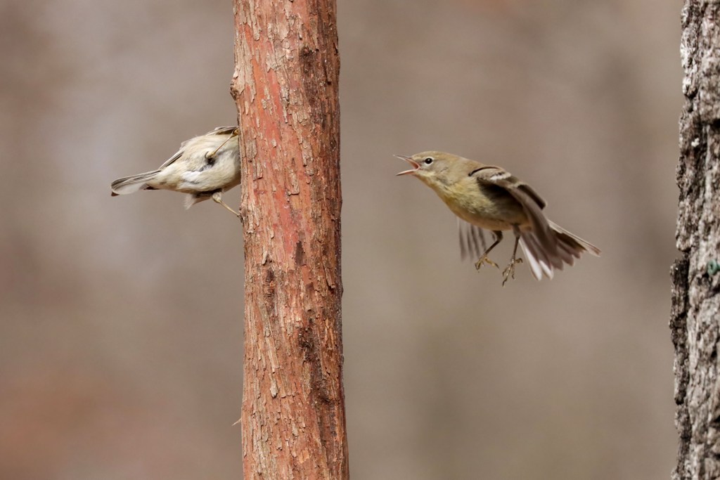 It seems like as soon as one perches to eat, another comes swooping in to dive bomb them out of the way.