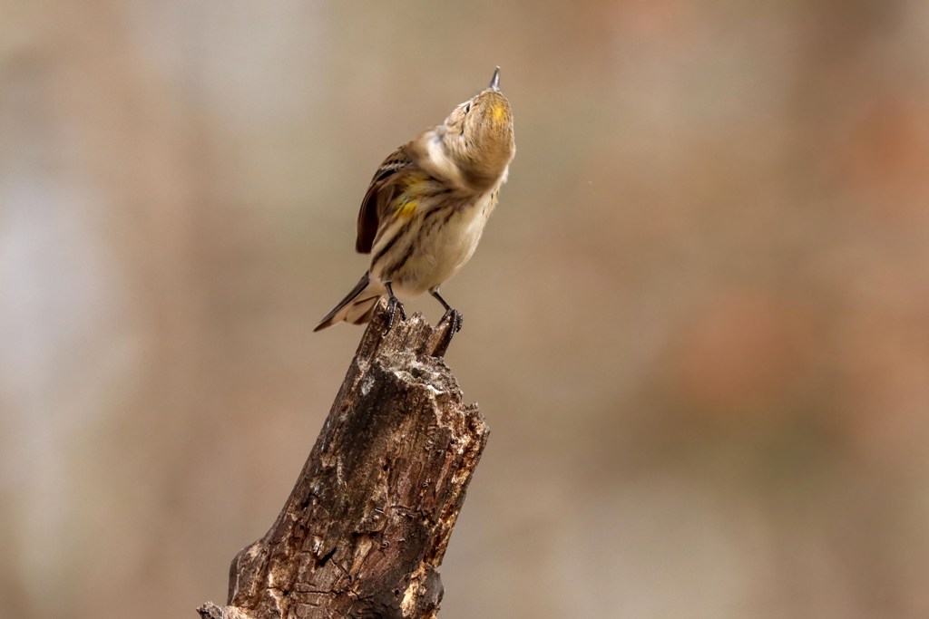 Yesterday afternoon, I took a break to go outside with my camera for a bit, and this winsome Yellow-rumped Warbler showed up to keep me company.