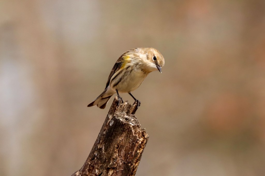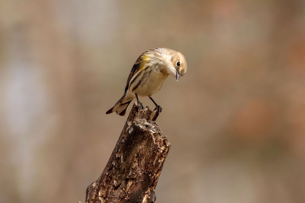 Yesterday afternoon, I took a break to go outside with my camera for a bit, and this winsome Yellow-rumped Warbler showed up to keep me company.