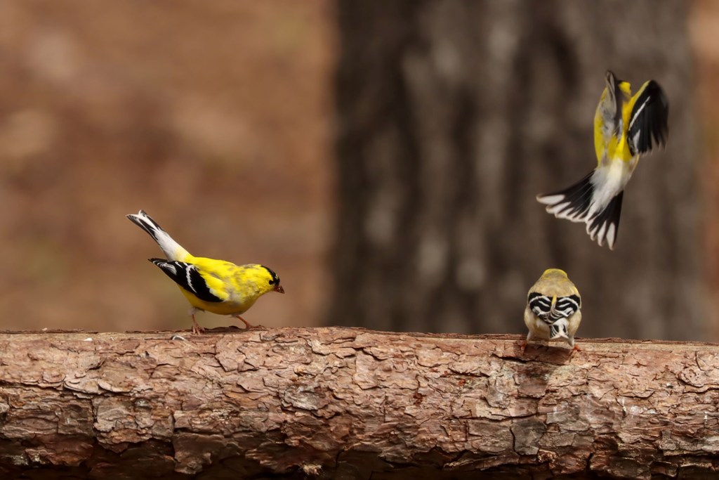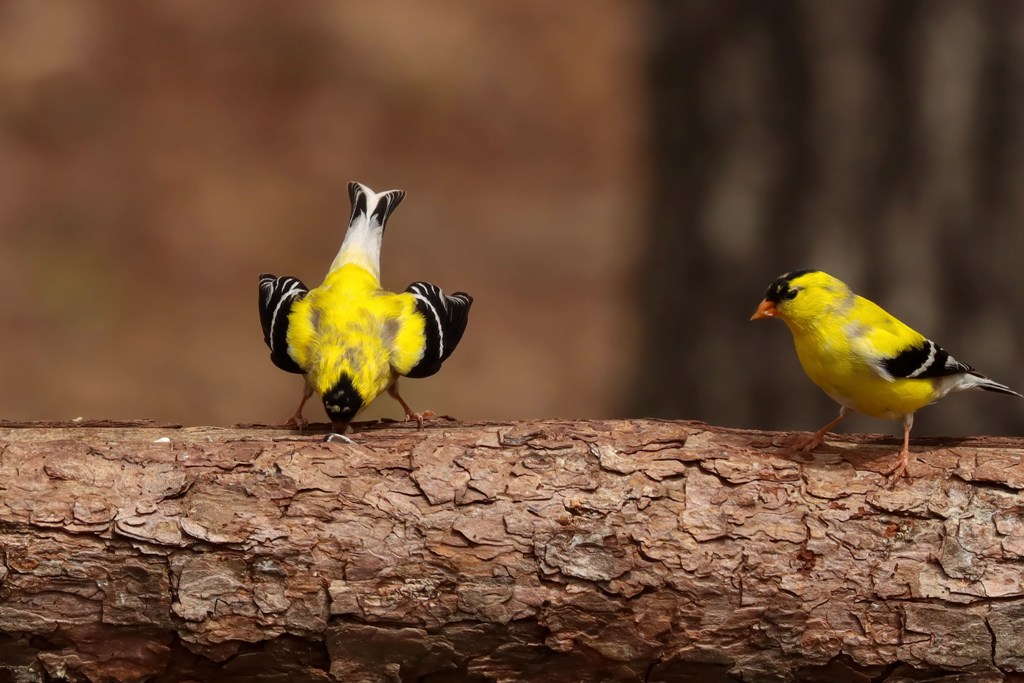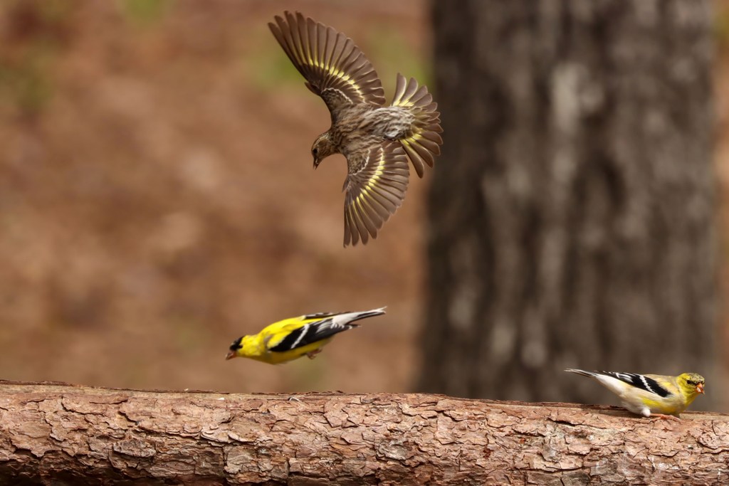 But, what goes around comes around, because only a second later he was dive-bombed by a Pine Siskin and had to vacate his spot.