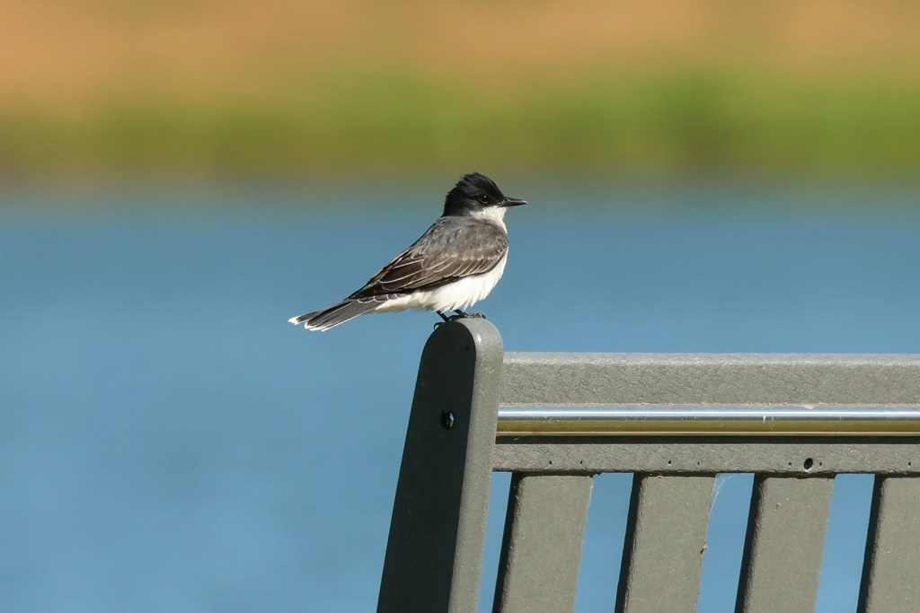 Right away, I spotted an Eastern Kingbird that was perched quite prettily, but was obstructed by some grass and vines. I snapped a shot, and then made it my quest to come away with a better picture of one of these beauties.
