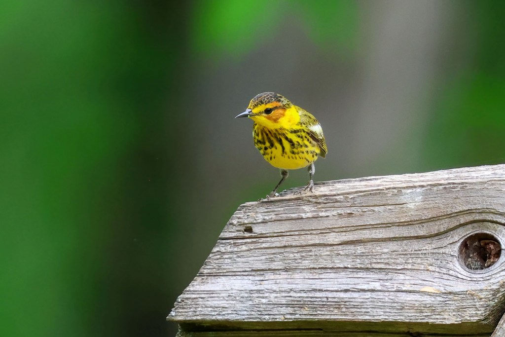 I’ve already shared about the Grosbeaks that popped in when I was visiting with my Mom a few days ago, and how the Blue Grosbeak was a first time capture for me. Well, I was treated to another first-time-photo that day – a tiny Cape May Warbler just passing through on its way north.