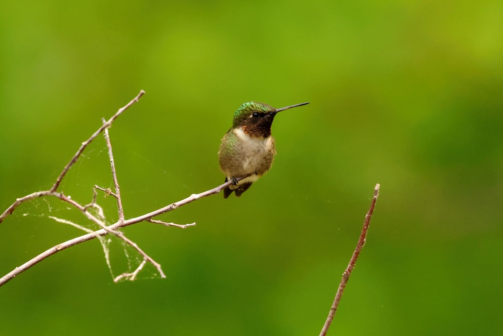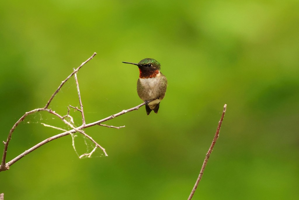 Now, when I stand on my back deck, I am able to get pictures of smaller birds that I would have missed before – like this Ruby-throated Hummingbird. The picture below is taken from about 40 feet away and is what it would look like with no cropping.