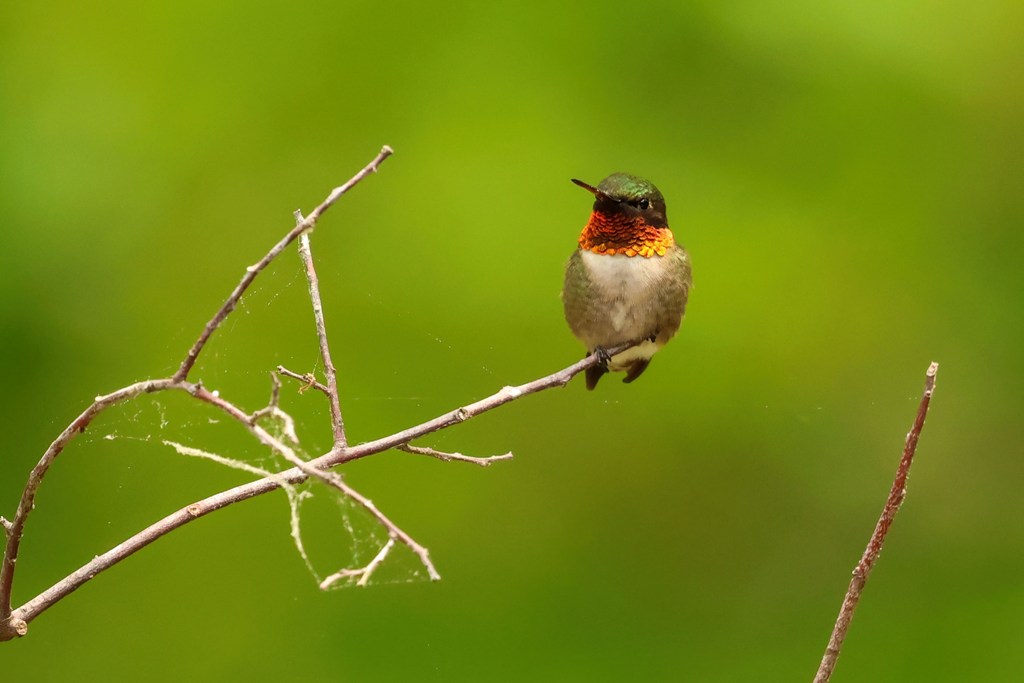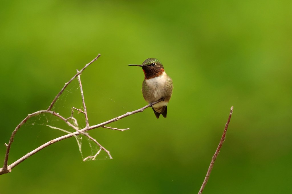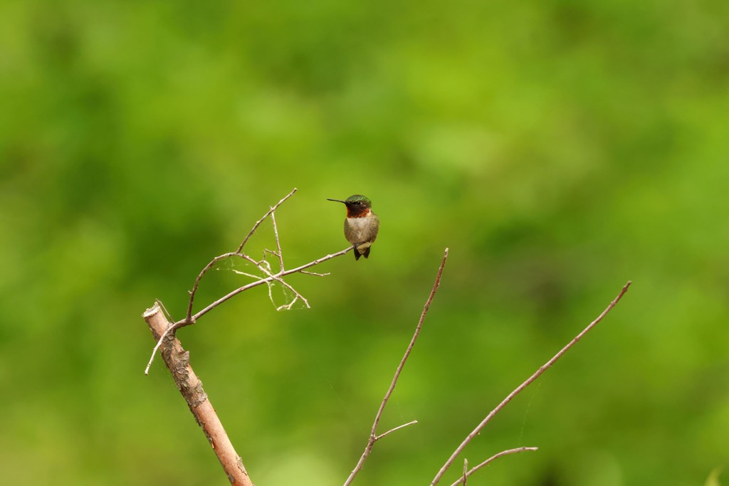 Now, when I stand on my back deck, I am able to get pictures of smaller birds that I would have missed before – like this Ruby-throated Hummingbird. The picture below is taken from about 40 feet away and is what it would look like with no cropping.
