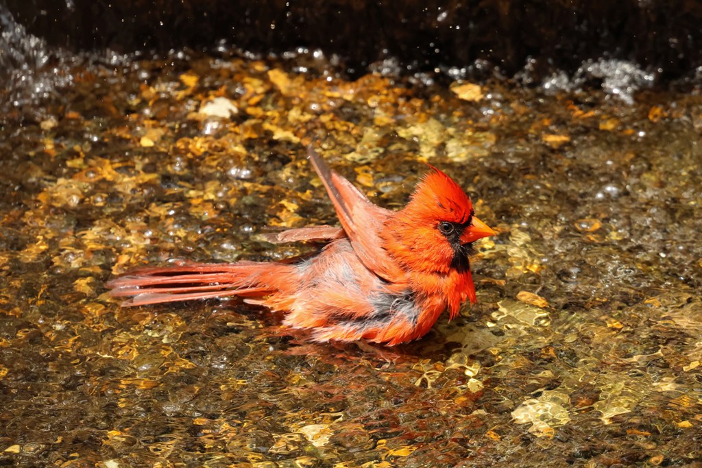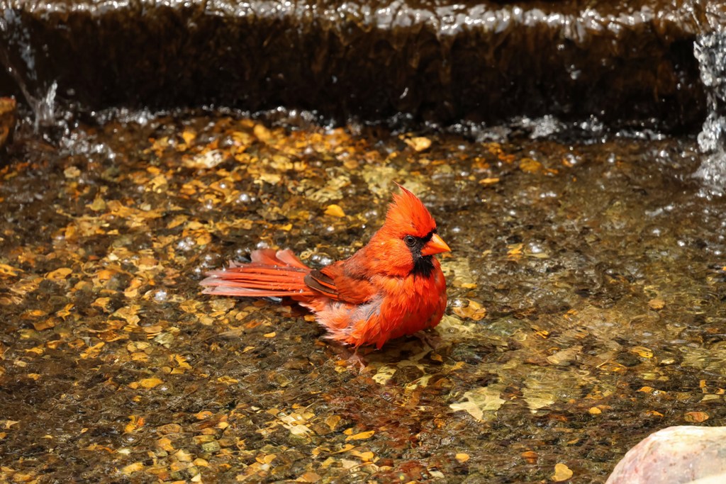 Well, every bird seems to have its own favorite part of the fountain, and for the Cardinals, it’s Amicalita. This gorgeous guy stopped in for a refreshing dip the other day.