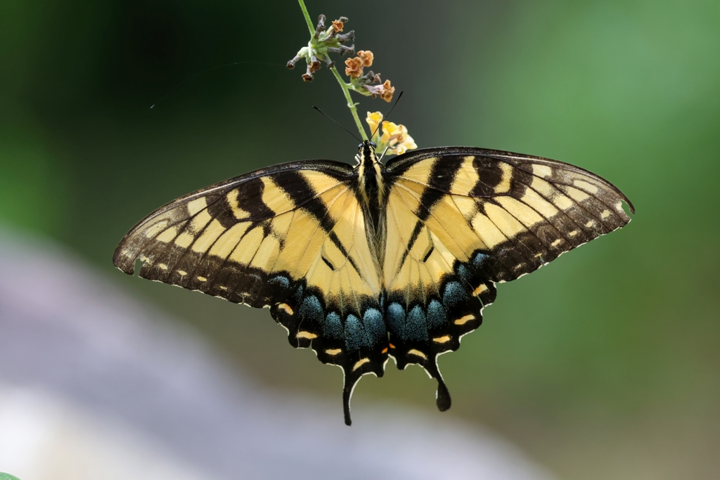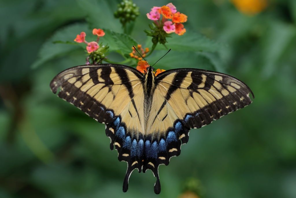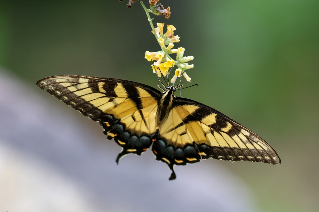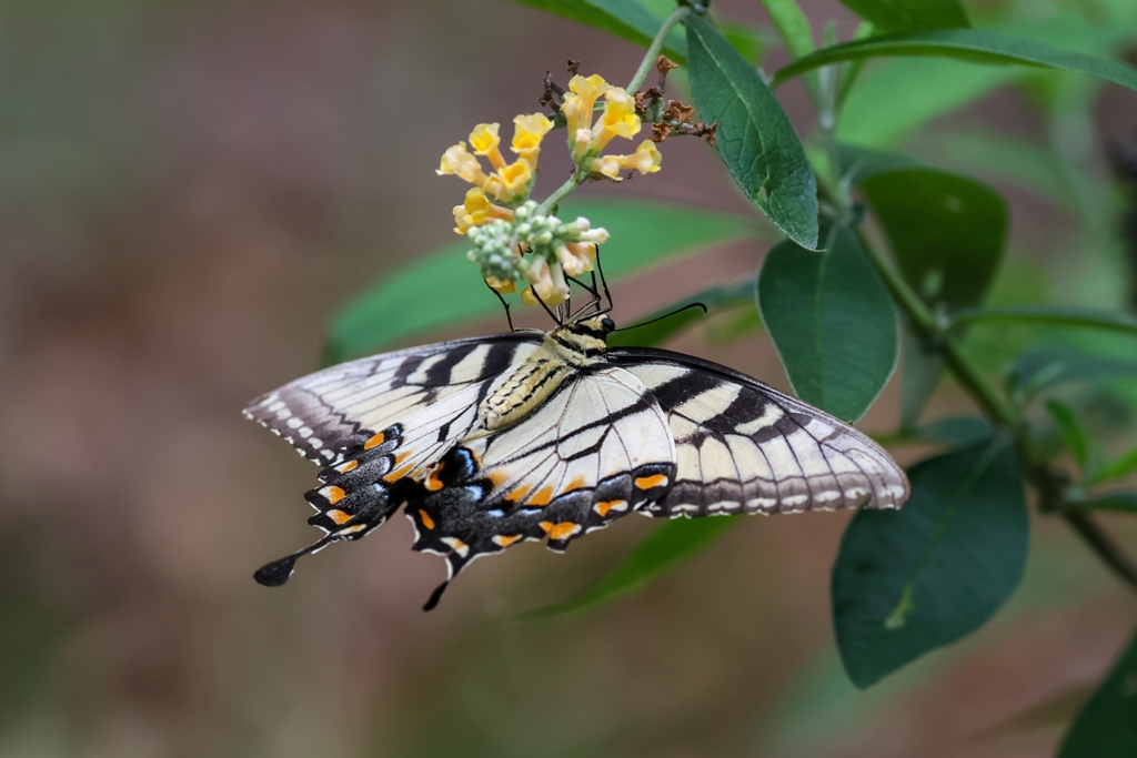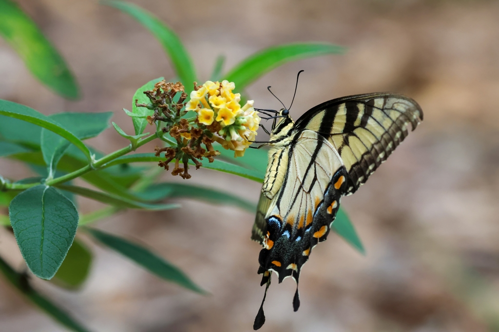 There’s no denying that the zinnia garden has been voted as the top spot to dine in our yard by both birds and butterflies, but there are other flavorful flowers to feast on as well. The other day, I saw a lovely Tiger Swallowtail enjoying the yellow blossoms on one of our butterfly bushes.
