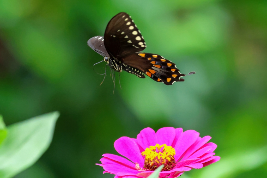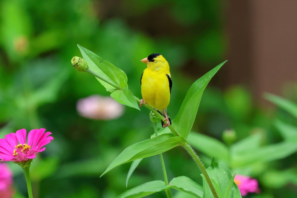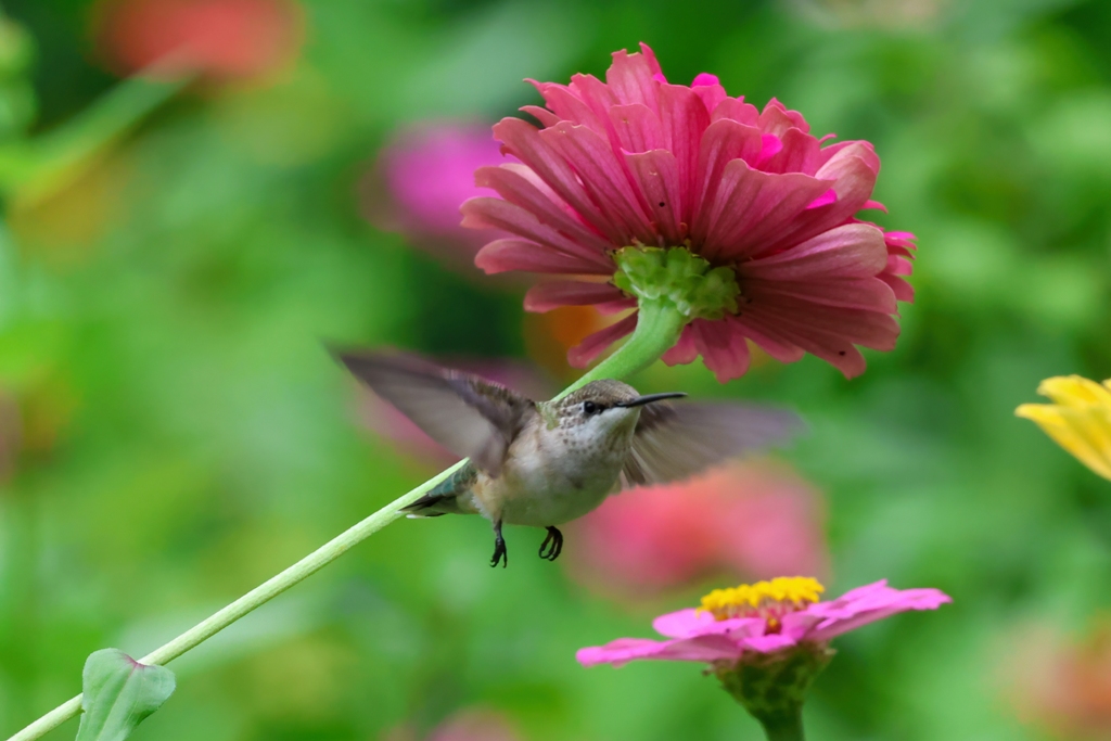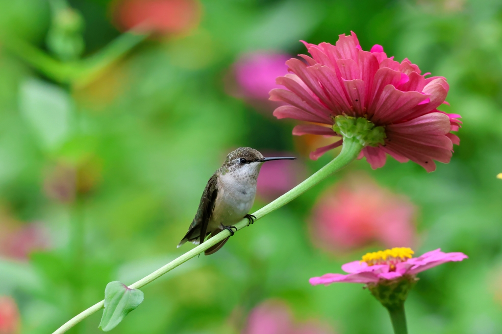 She also, or course, stands watch over the zinnias themselves. She frequently perches on a stem to watch for intruders…