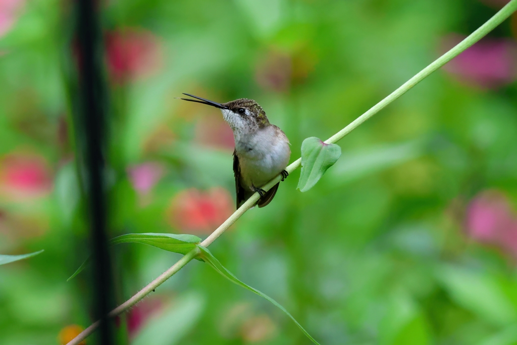 But out of everyone who frequents the flowers, the female Ruby-throated Hummingbird is the self-appointed sovereign. This warrior queen simply allows no rivals to trespass into her kingdom.