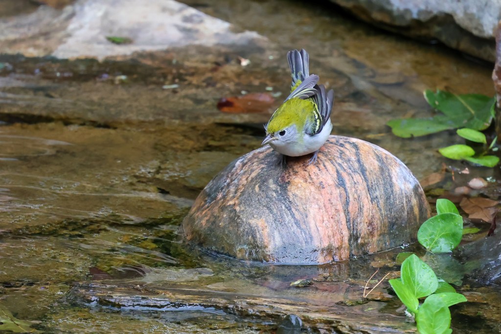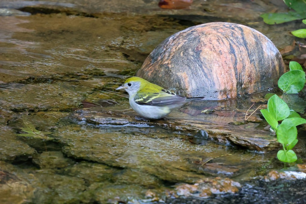 Then, a bit later, a Chestnut-sided Warbler darted down to the fountain for a quick dip.