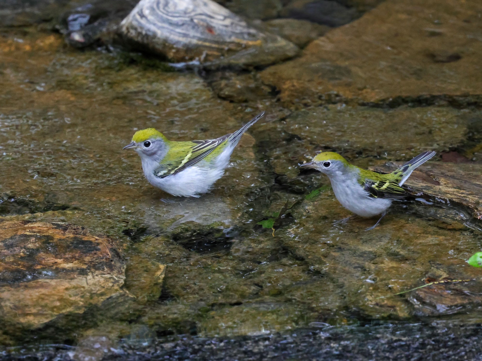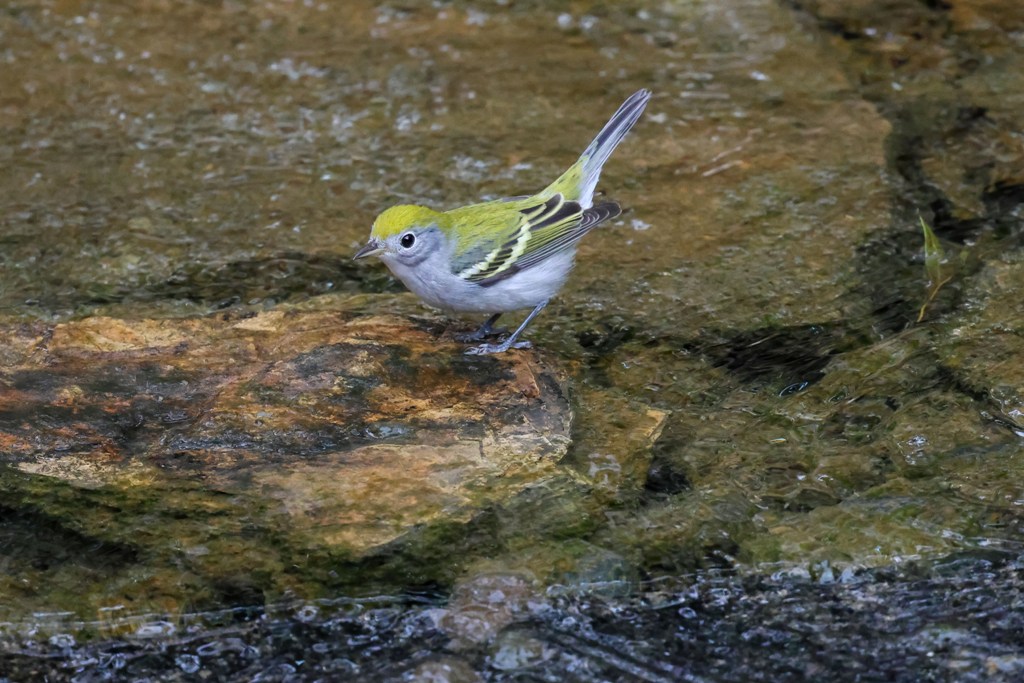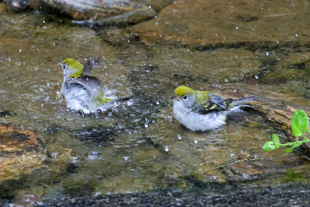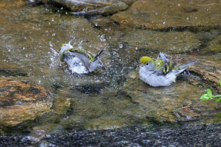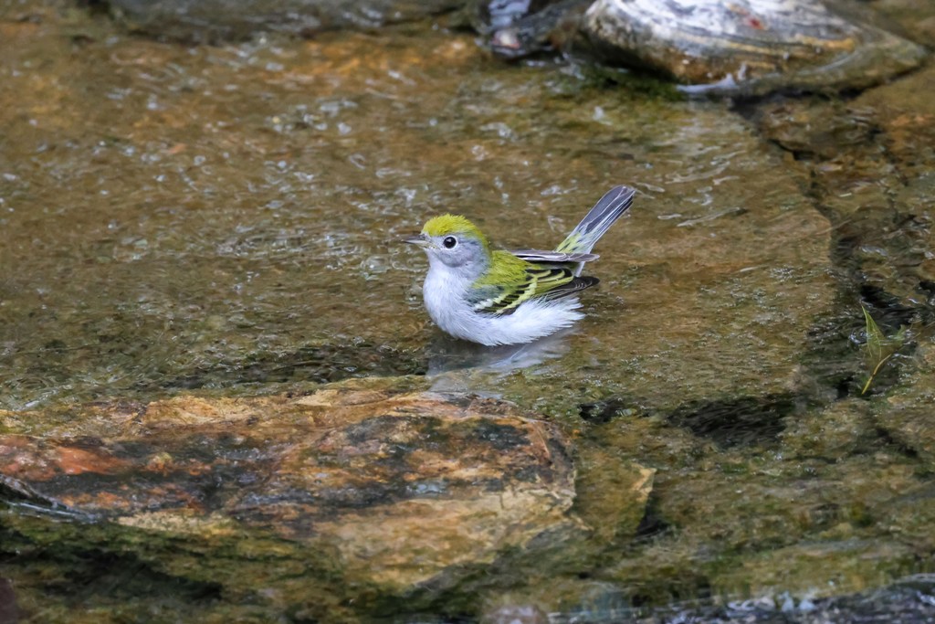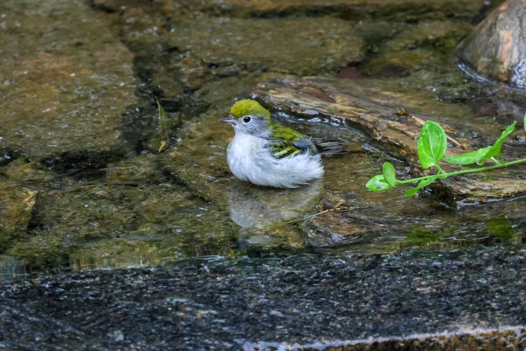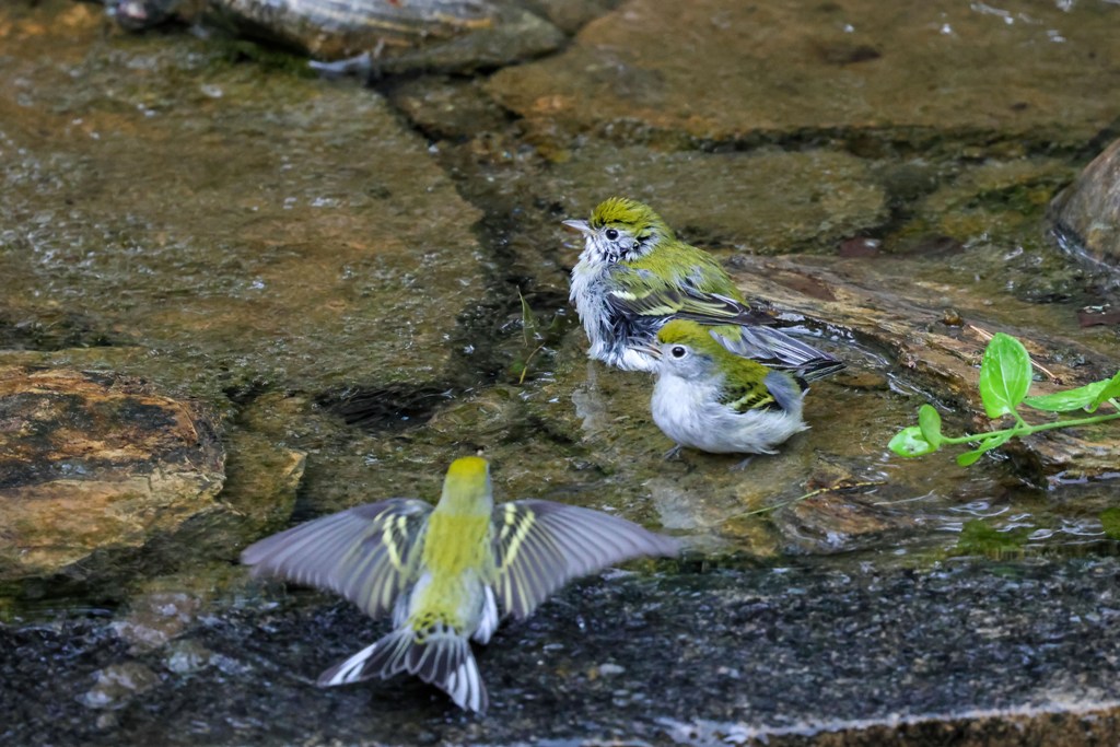 Altogether, there were four or five of these little warblers taking turns darting in and out of the water.