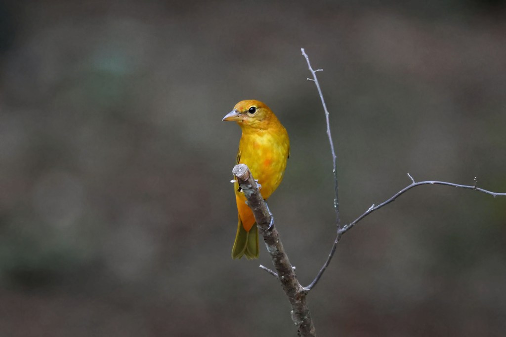 What a gorgeous fellow, glowing golden, radiant scarlet, subtle olivine tail feathers. How delightful for all of us that he decided to sit awhile & contemplate his bathing prospects.