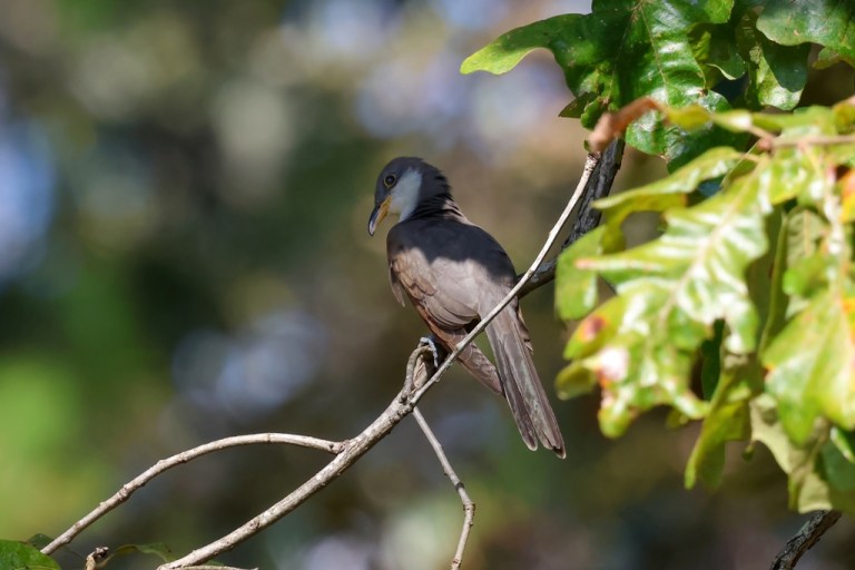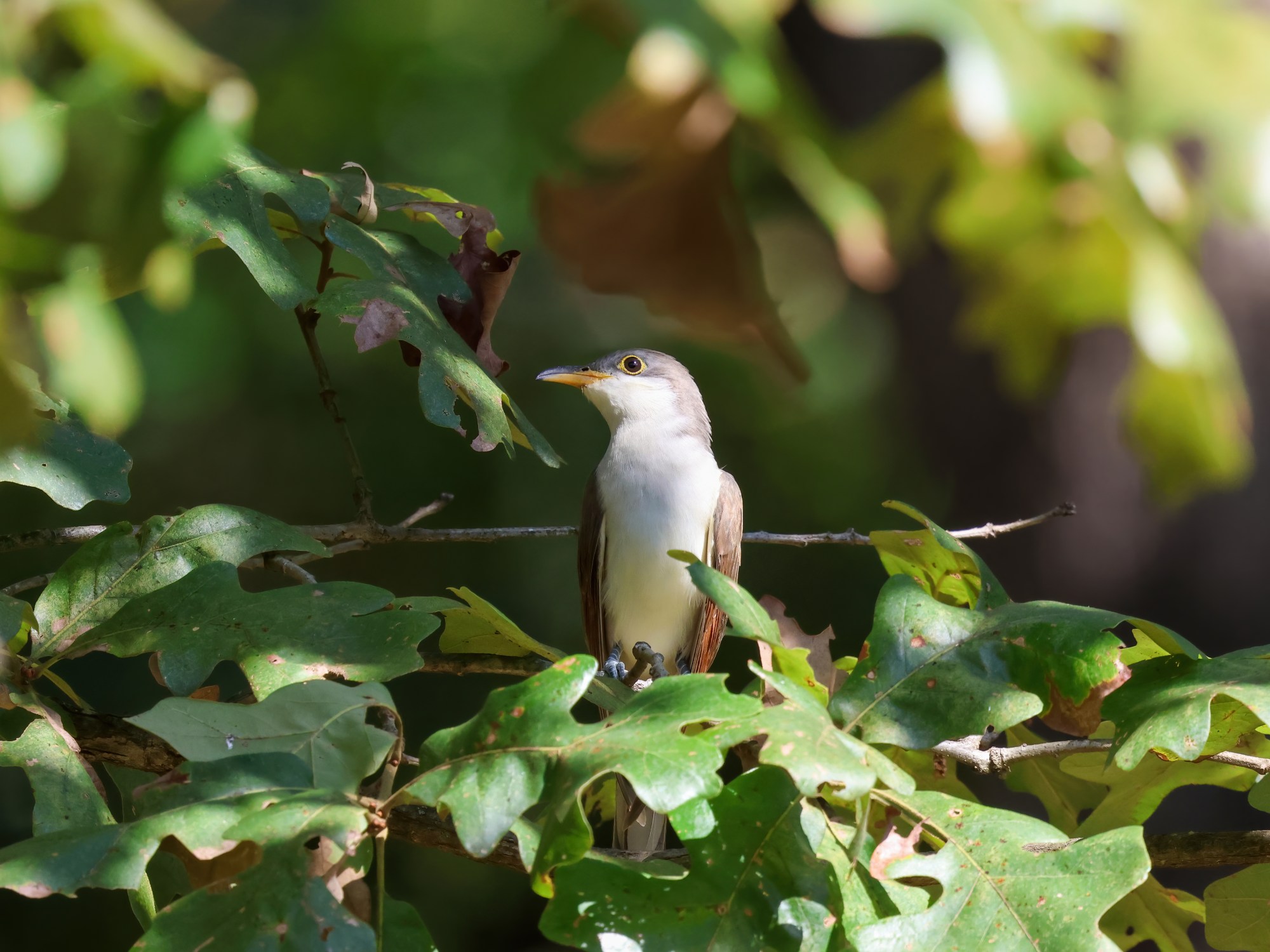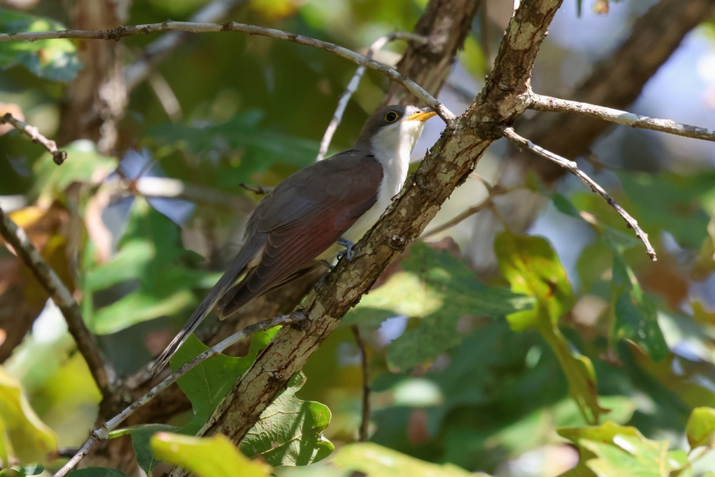 At first I thought it was a Dove, because I saw a flash of cream-colored feathers, but turns out it was a Yellow-billed Cuckoo!