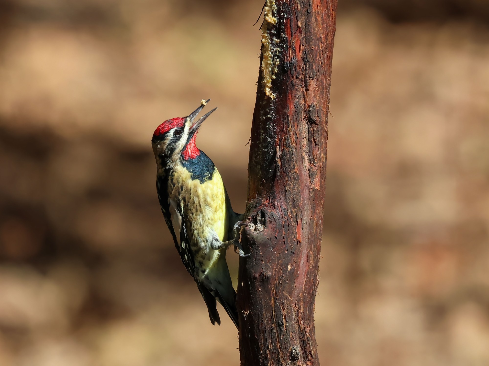 He probably dreamed about that bark butter all summer and couldn’t wait to get his beak into it once he arrived!