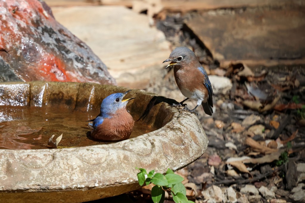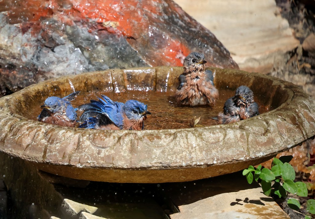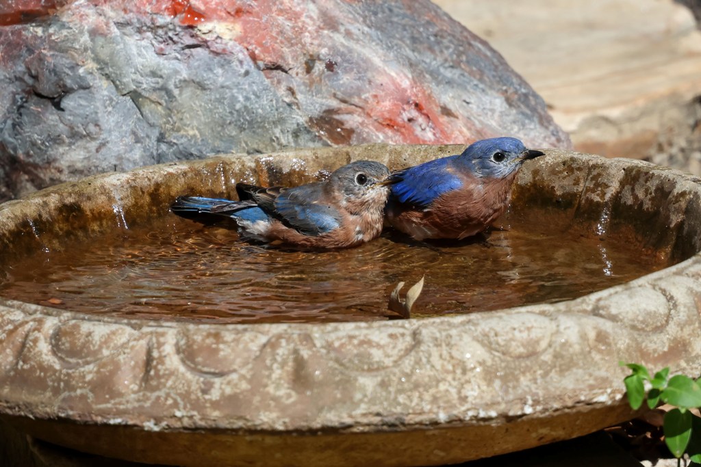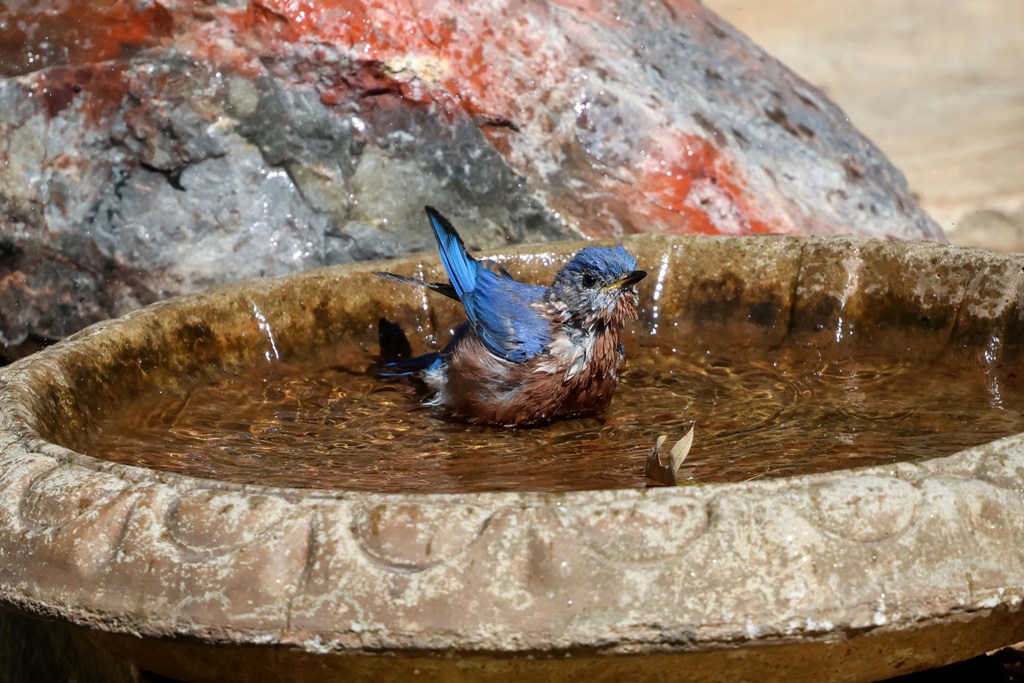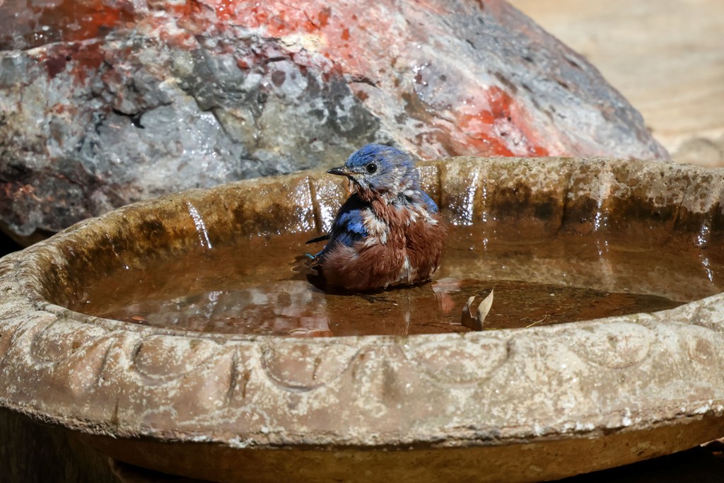 For awhile, there was a constant blur of bluebirds flying in and out of the water.