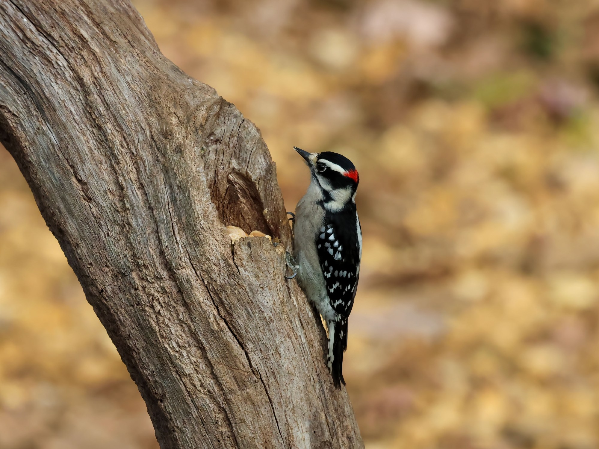 And last but not least, a cute little Downy Woodpecker (this one’s a fella) has been stopping in to sample the peanuts.
