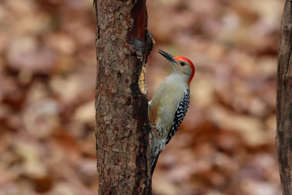 A pair of Red-bellied Woodpeckers has also been making regular appearances. Ladies first…