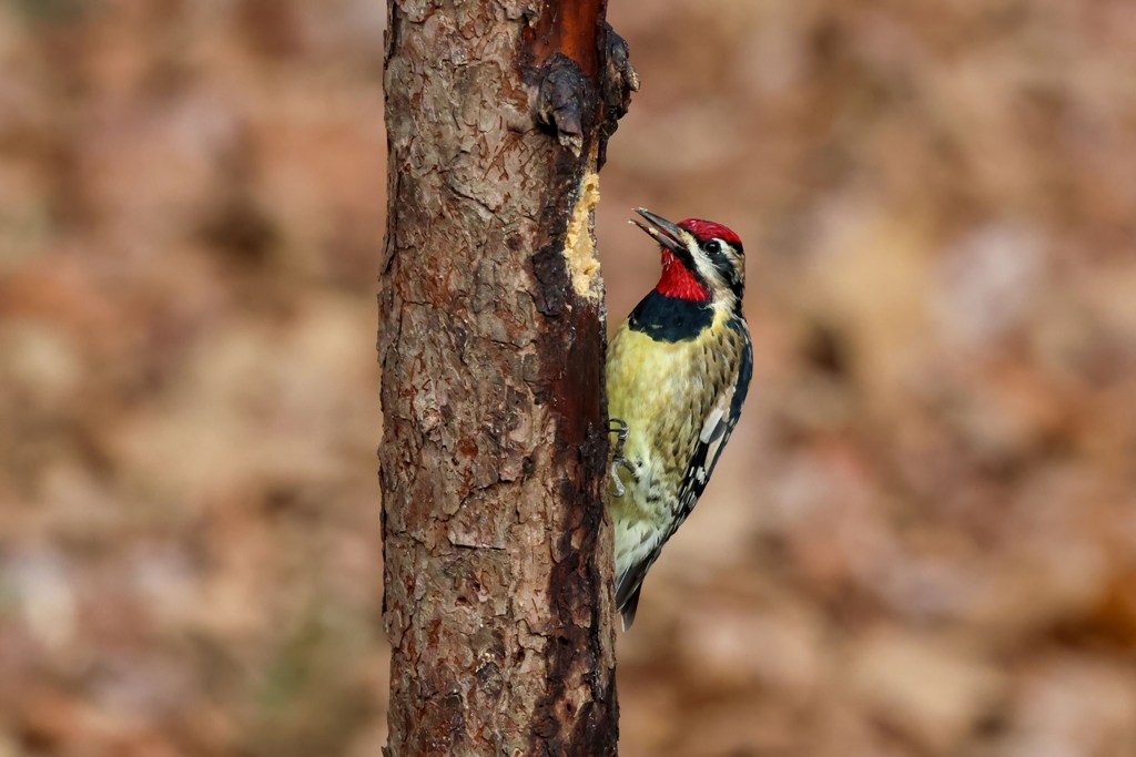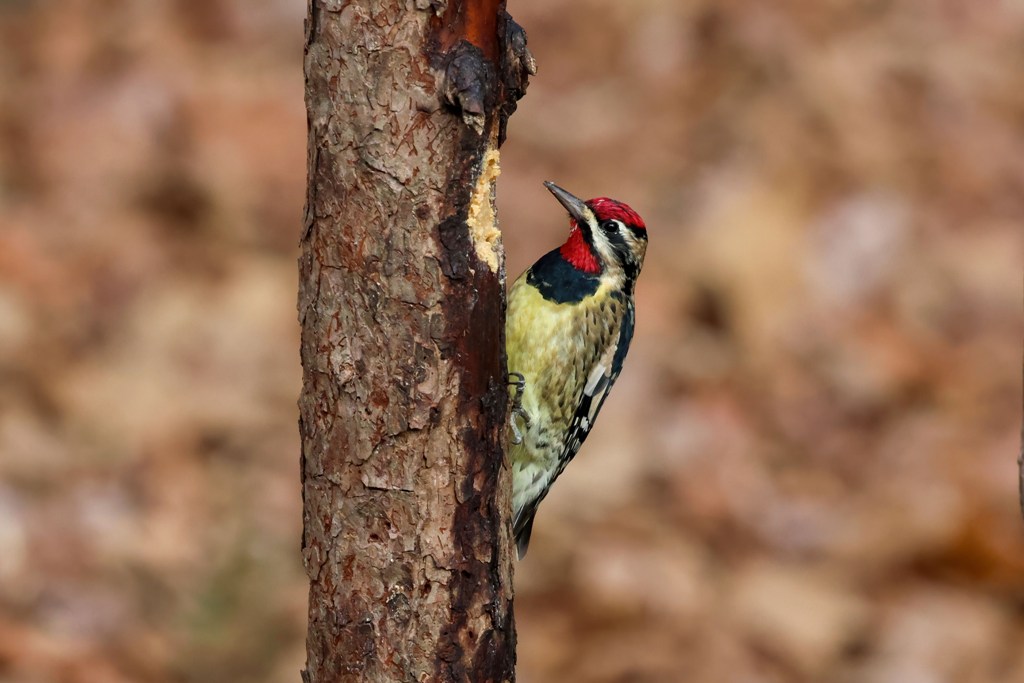 First is this Yellow-bellied Sapsucker (which always sounds like a comic strip name to me!) who has been showing up on a regular basis to sample the Bark Butter.
