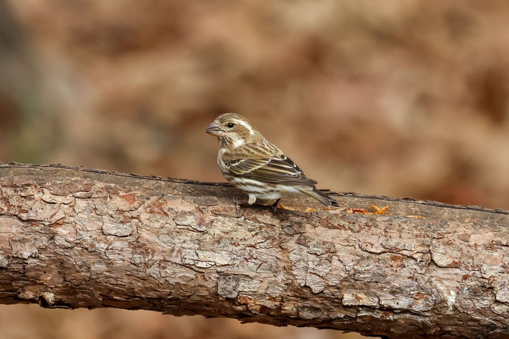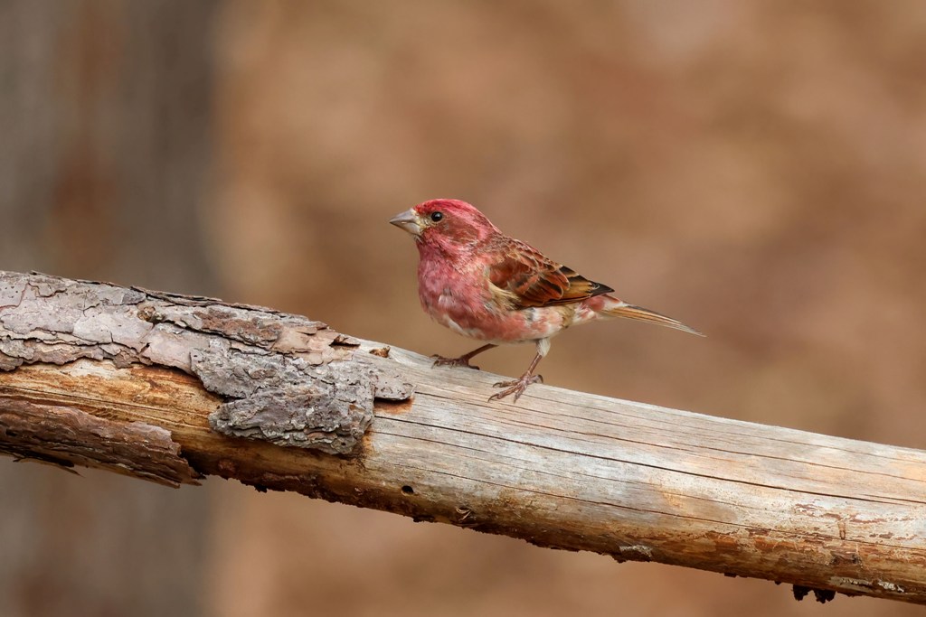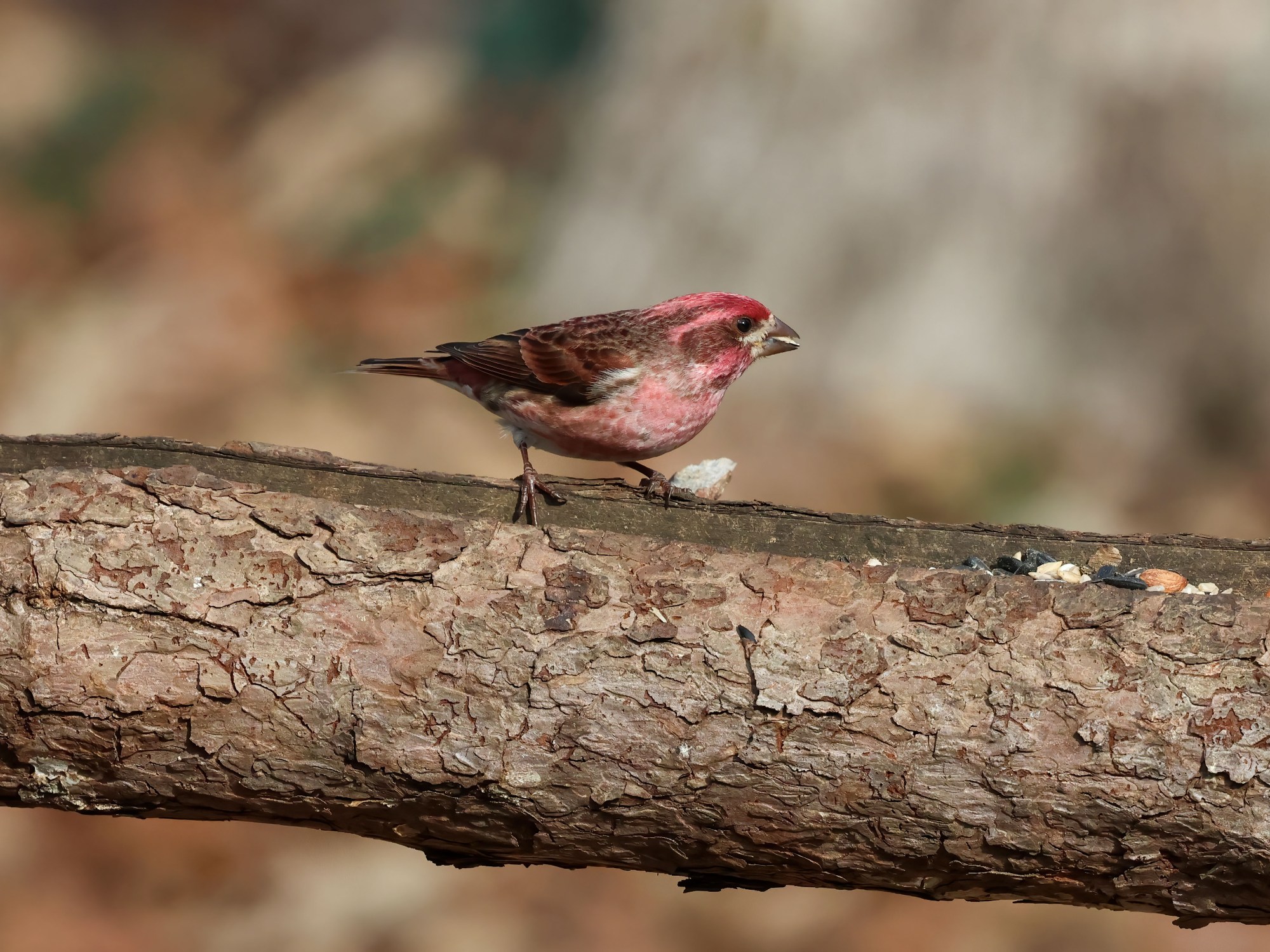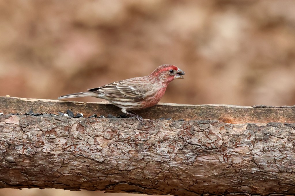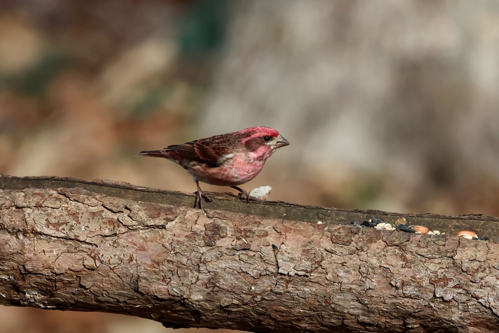 But every now and then, a Purple Finch drops in for some food.