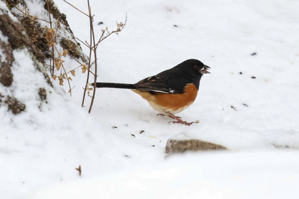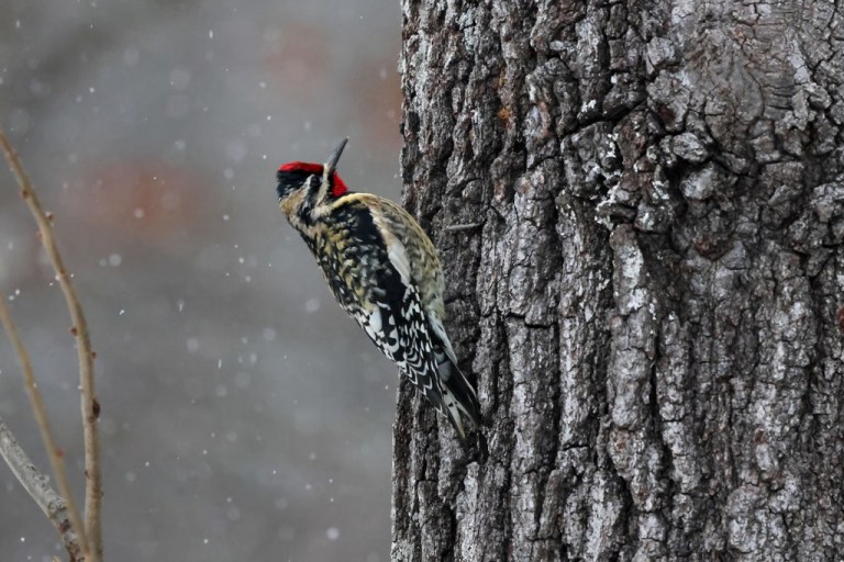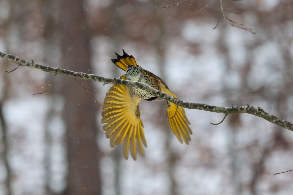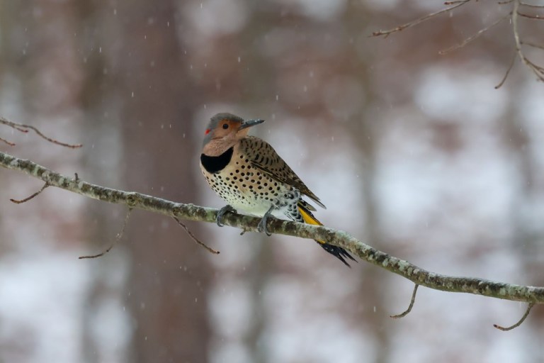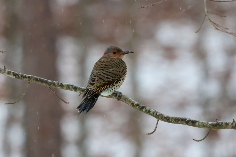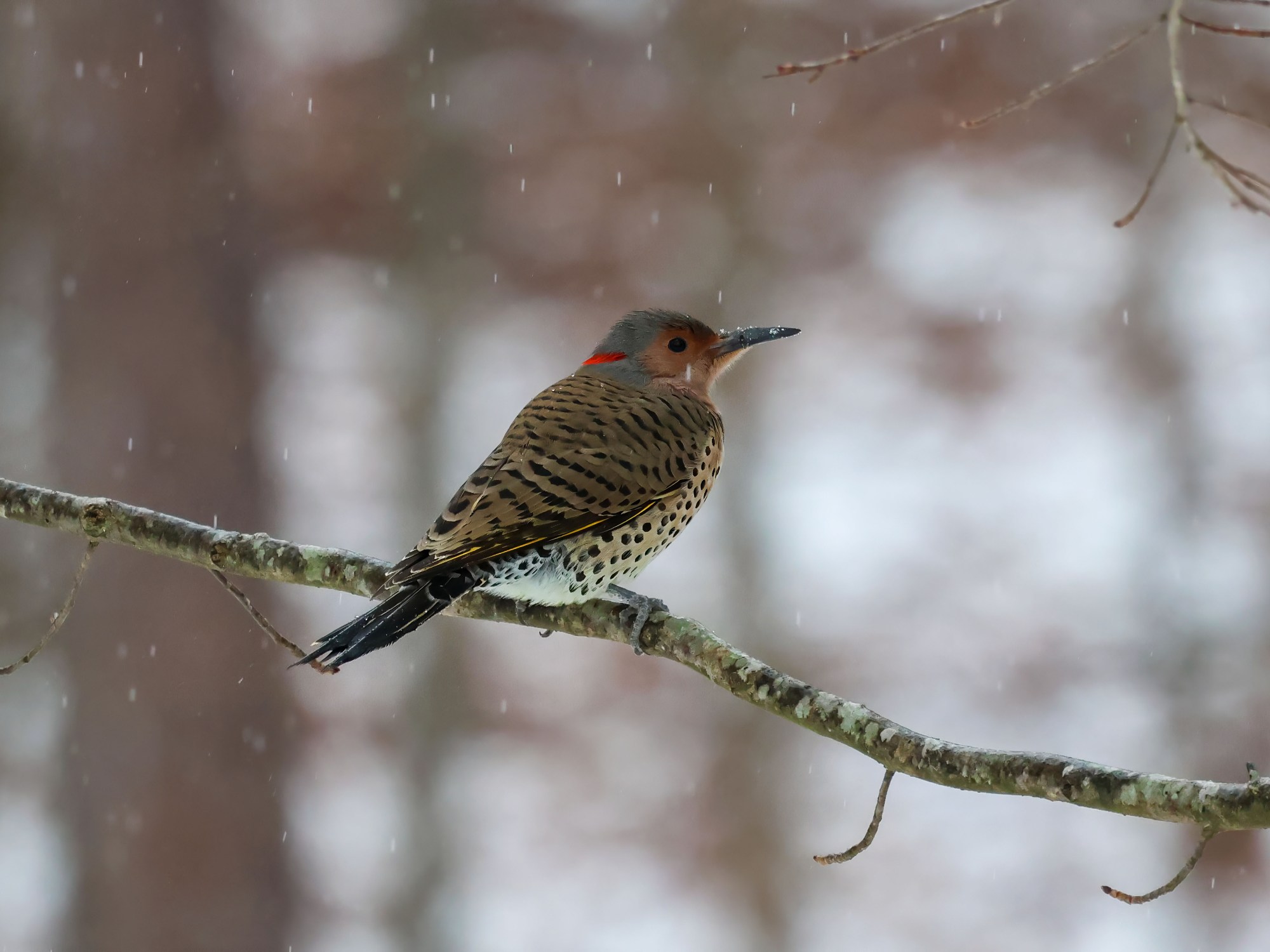 And now…for the star of the snow, I mean show…a Yellow-shafted Northern Flicker paid a brief visit.