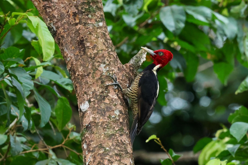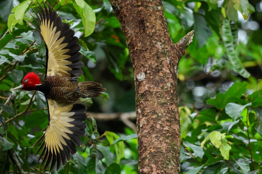 A Pale-billed Woodpecker swooped in to hunt for bugs in the tree bark…