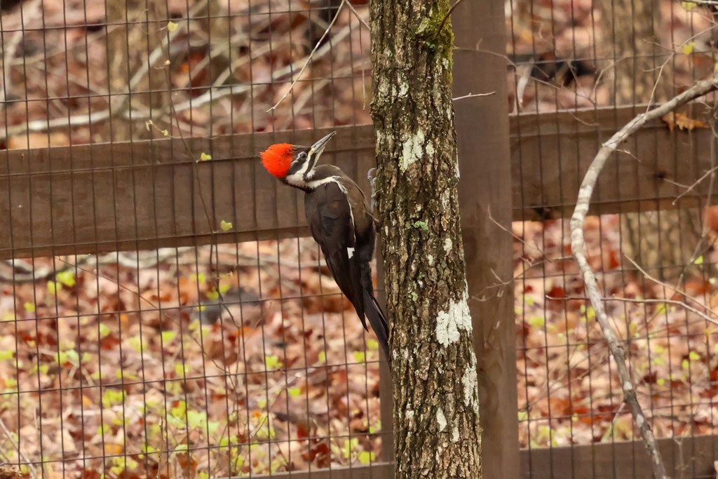 …and a Pileated Woodpecker flew across the yard to investigate some trees at the edge of the fence.