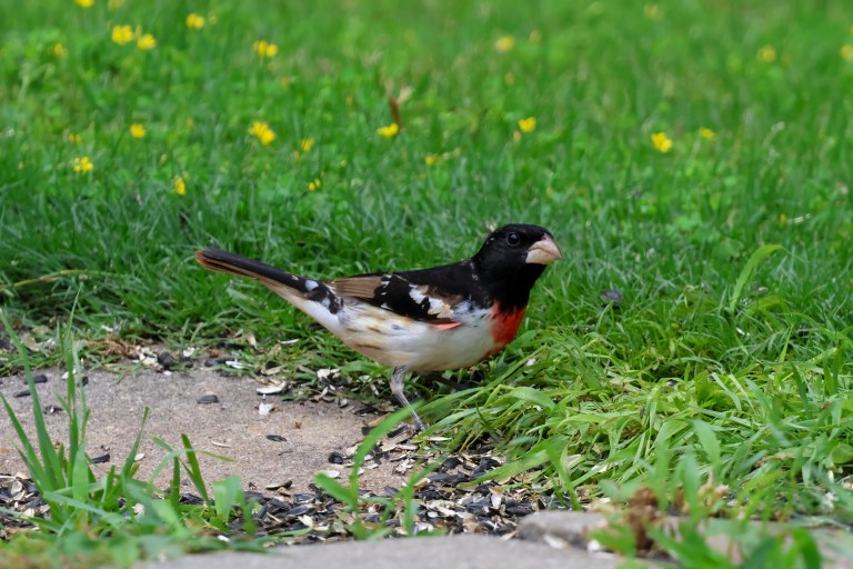 I love it when I get to borrow someone else’s backyard birds! Like two days ago, when my Mom called and told me that she had just seen a pair of Rose-breasted Grosbeaks at her feeders. Well, I can assure you that I wasted no time at all in inviting myself over!