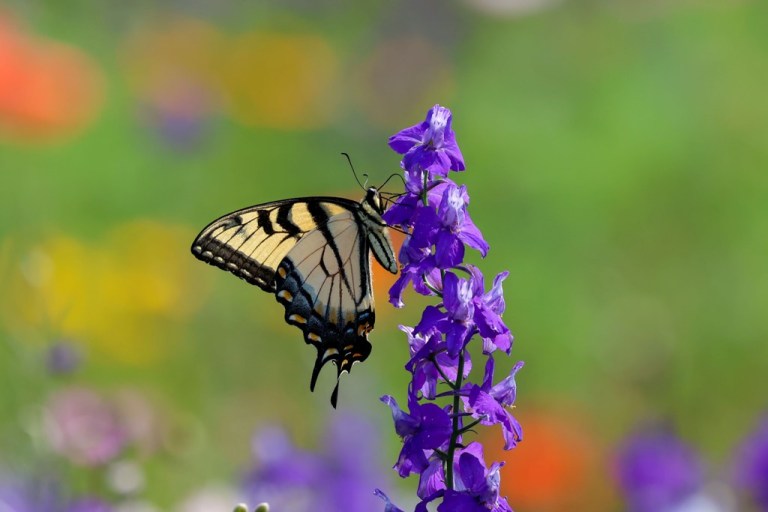 …and with larkspur, which was a favorite of the swallowtails! I love how the flowers blur in the background to create such a pretty blend of colors.