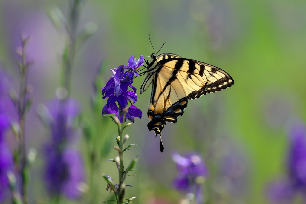 …and with larkspur, which was a favorite of the swallowtails! I love how the flowers blur in the background to create such a pretty blend of colors.