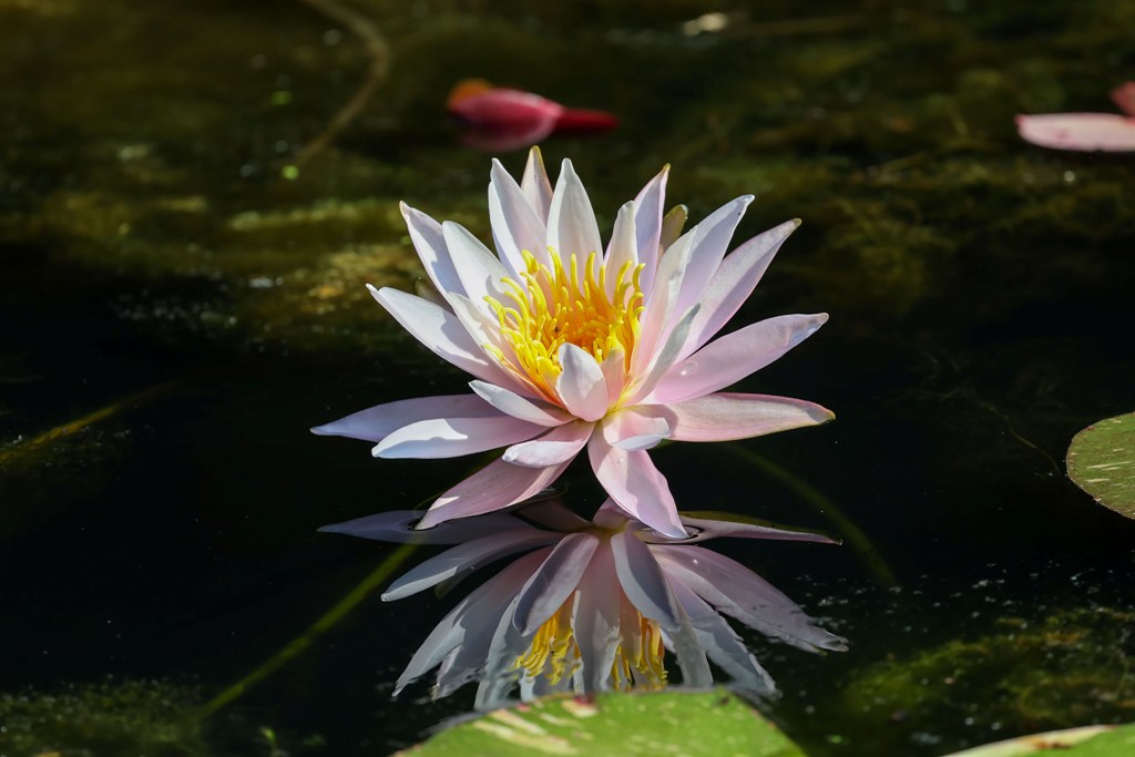 I really like the picture of the lilies below because of the way the reflection of some red Japanese maples was giving the water a rosy tint.