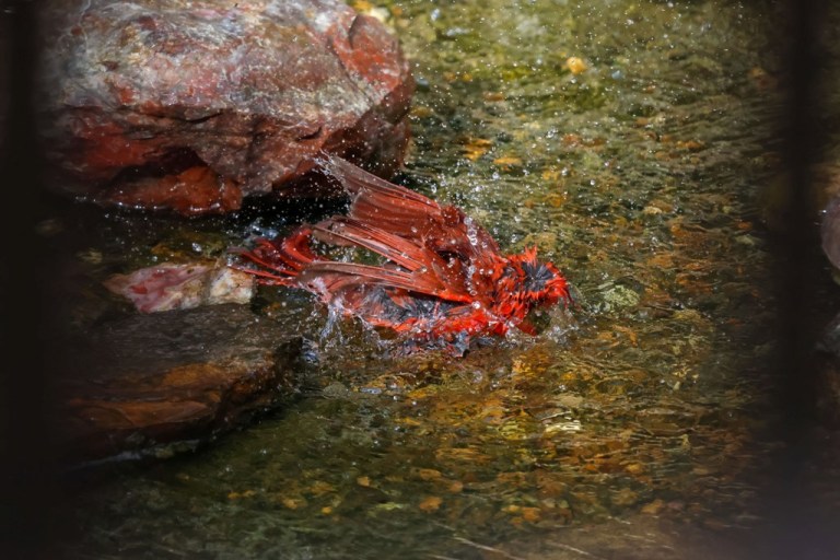 This male Cardinal hopped in the fountain the other day and splashed about for a good while.