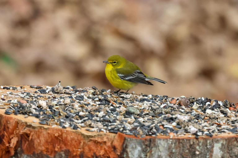 This Carolina Chickadee and Pine Warbler came to sample seed…