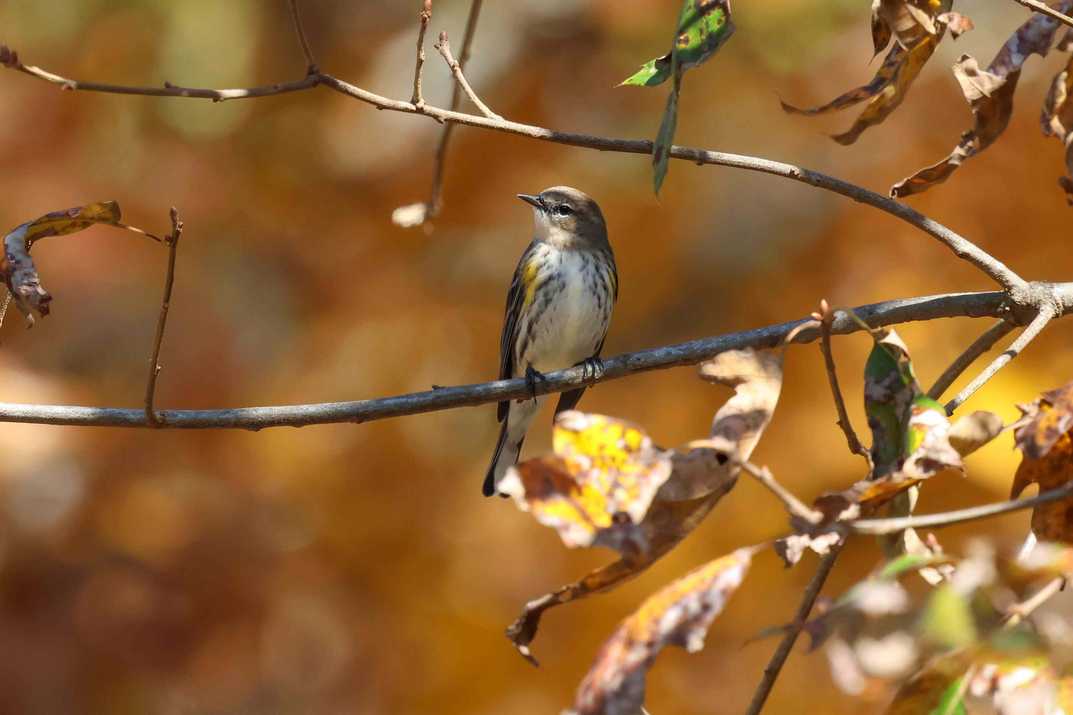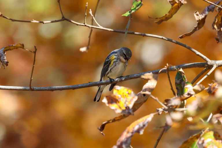 A Yellow-rumped Warbler was foraging for free range food up in the treetops…