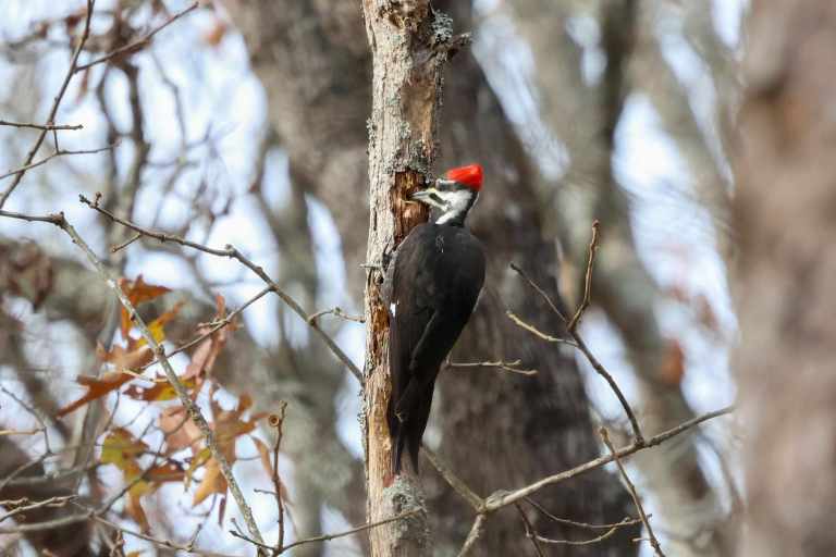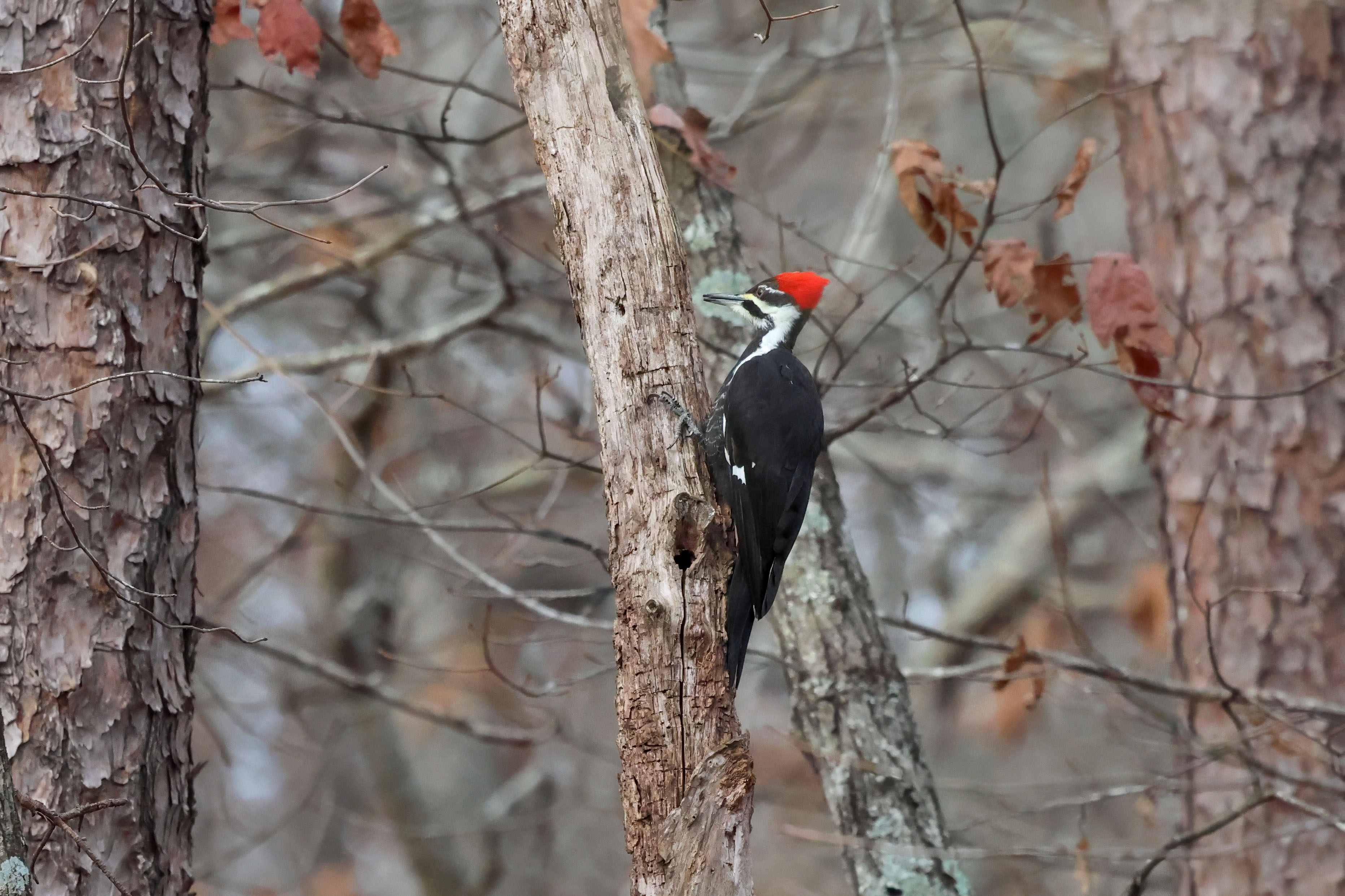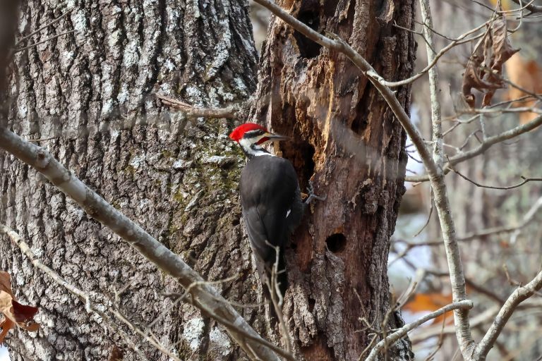 I was out on the deck the other day, taking some backyard bird pictures, when I heard the sound of a screaming monkey resounding from just outside the fence line. Now, since primates don’t swing from the trees in North Georgia, that could only mean one thing – a Pileated Woodpecker was nearby.