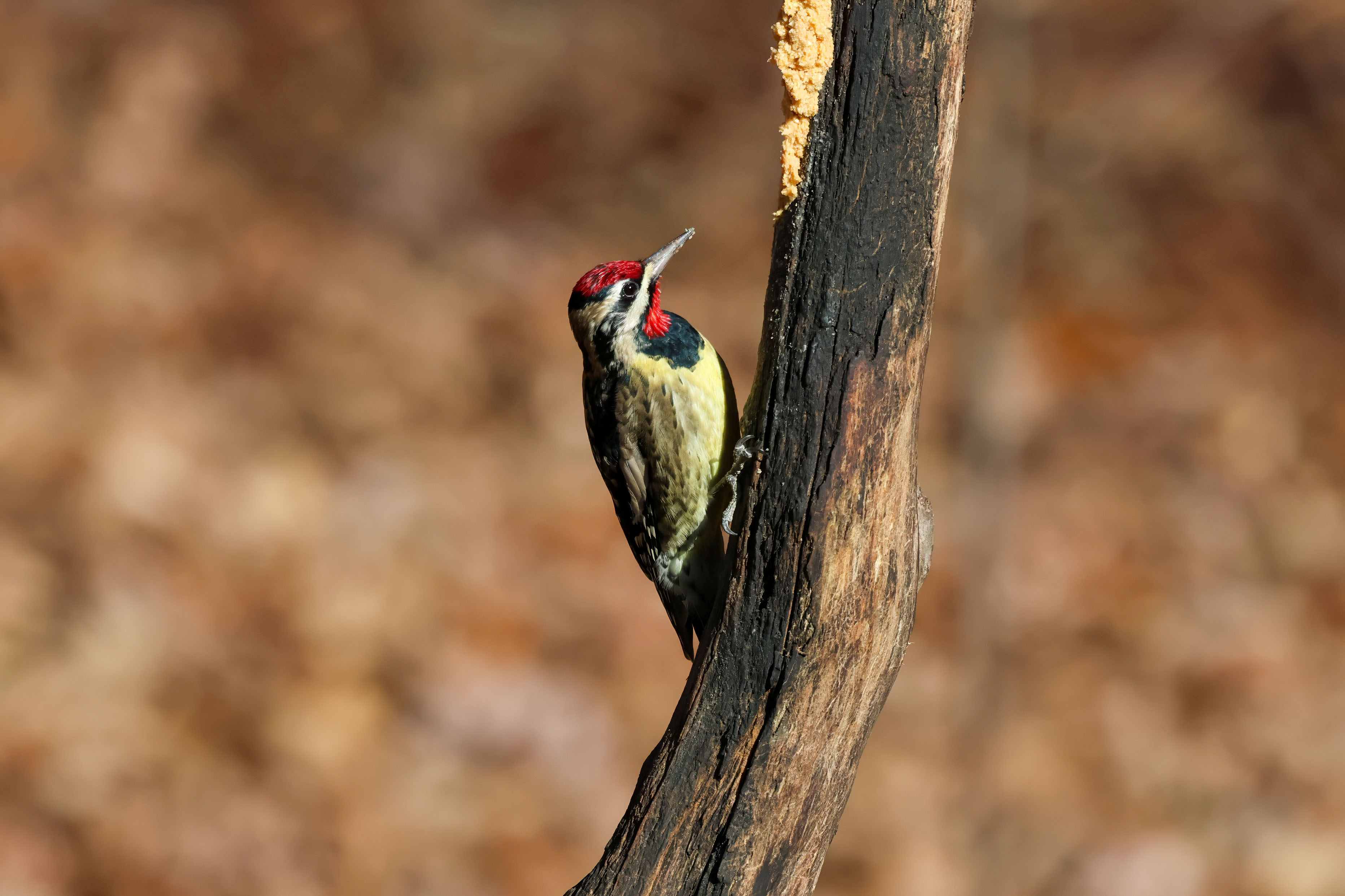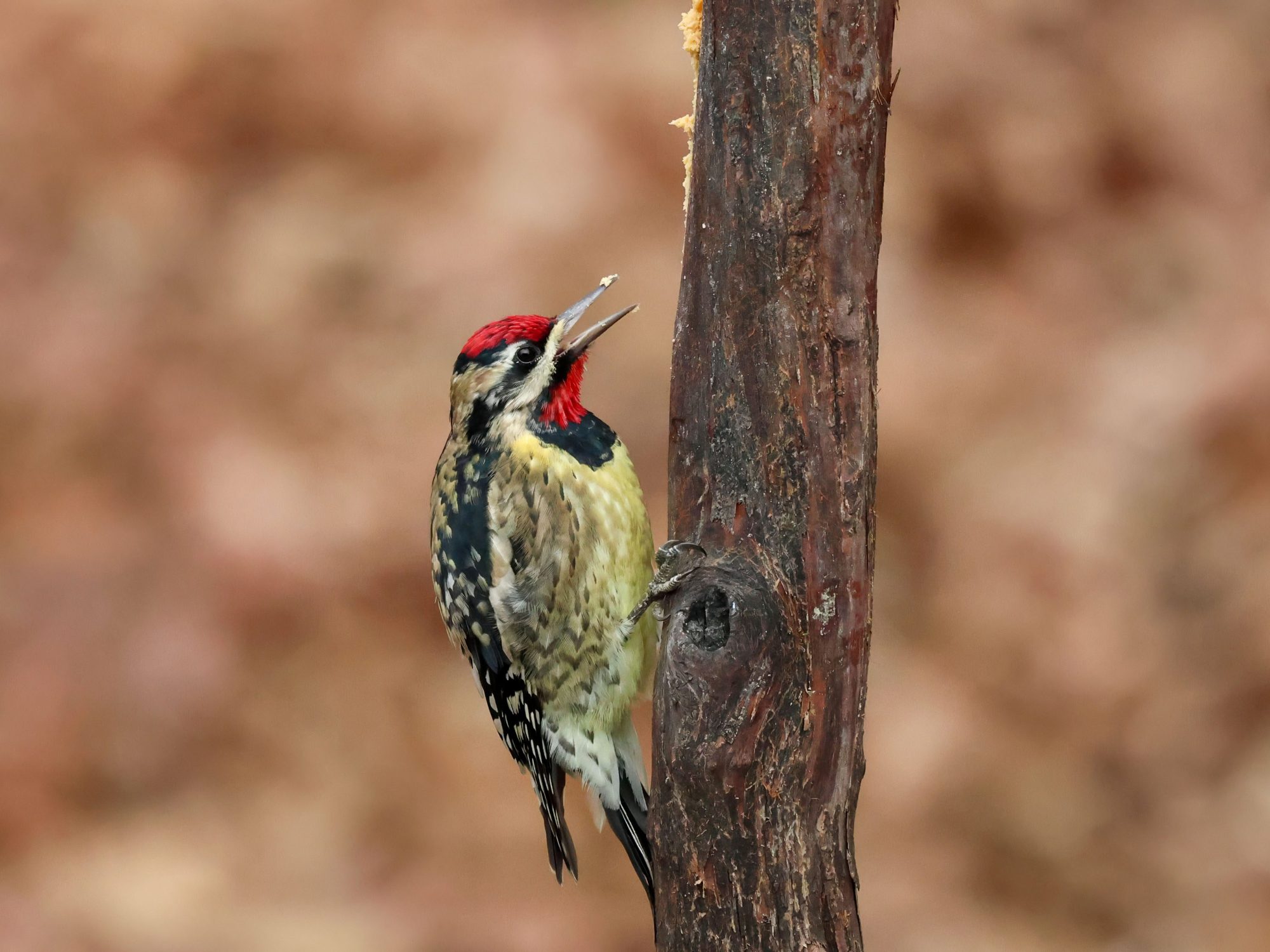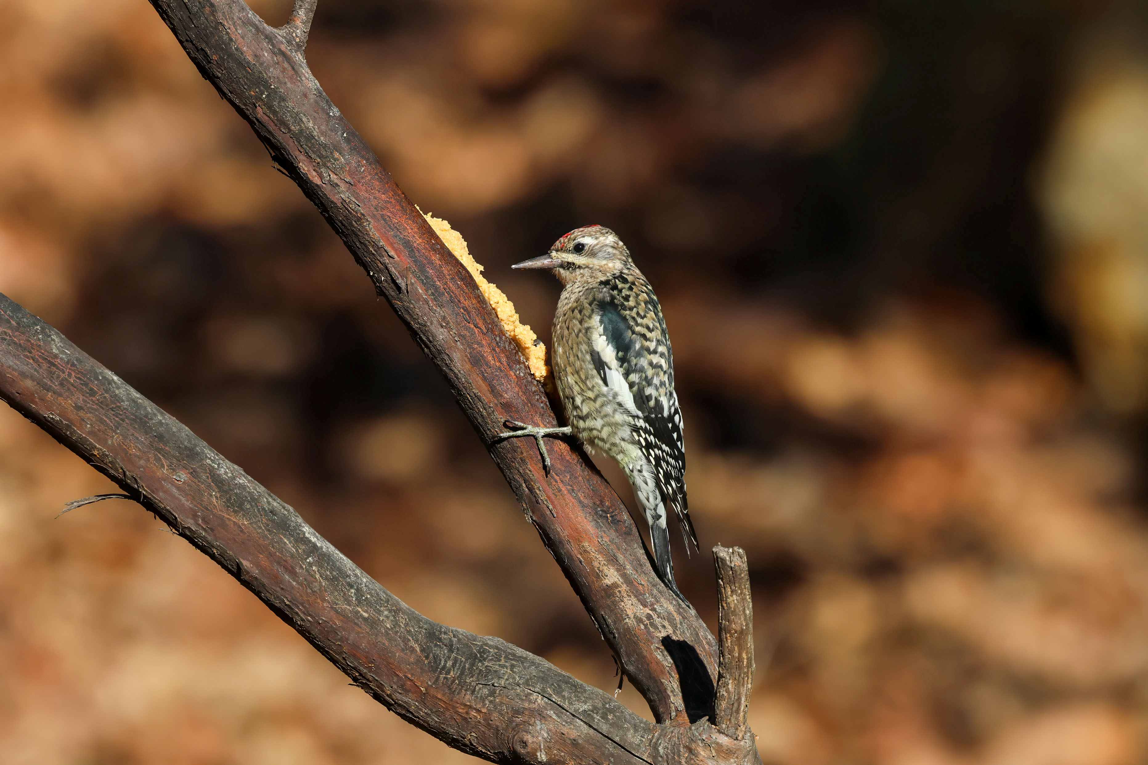 And last but not least, I’ve had a pair of Yellow-bellied Sapsuckers showing up (you can see one lurking in the shadows in the previous picture!)…who also like the Bark Butter. Are you sensing a common food preference?