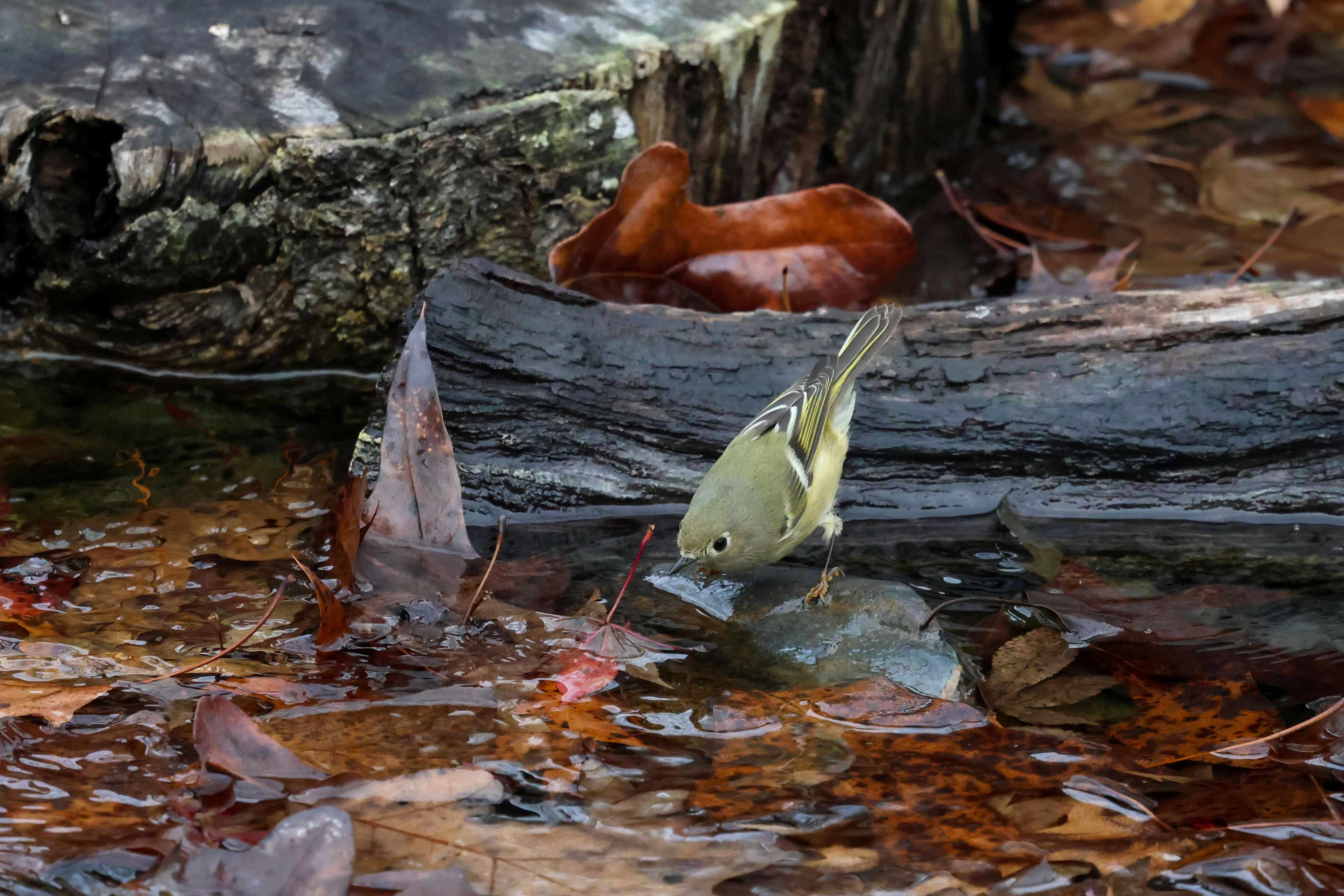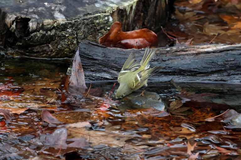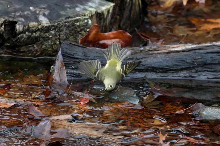 Concealed beneath his head feathers is a ruby-red crown that I only managed to catch a fleeting glimpse of. I was hoping he would flare it out for us while bathing, but alas, I think he was reluctant to reveal his royalty around the paparazzi!