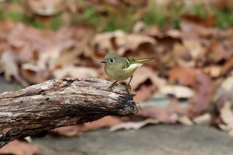I love Ruby-crowned Kinglets! With their white eye-rings, their spindly legs, and their constant quirky twitchiness, they remind me of an itty bitty cartoon character!