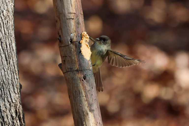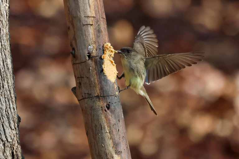 Phoebes are one of those birds that you could definitely call fun feathered feasters. I love watching them dart down from where they are perched to try and snare their next meal – whether that be an unsuspecting insect, or the Bark Butter that I put out for the birds.