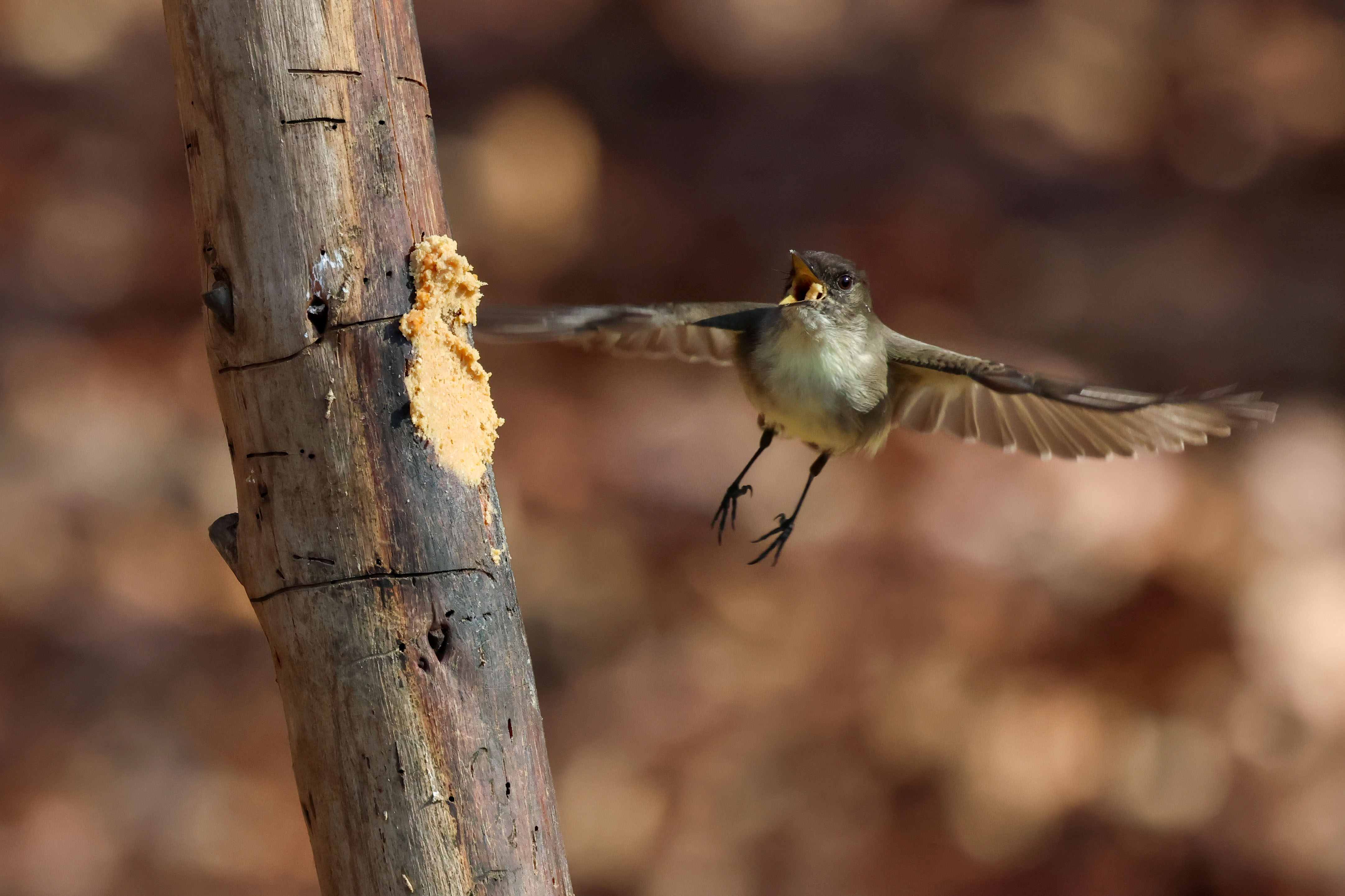 Phoebes are one of those birds that you could definitely call fun feathered feasters. I love watching them dart down from where they are perched to try and snare their next meal – whether that be an unsuspecting insect, or the Bark Butter that I put out for the birds.