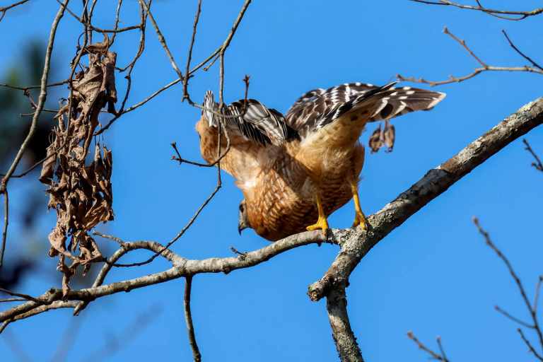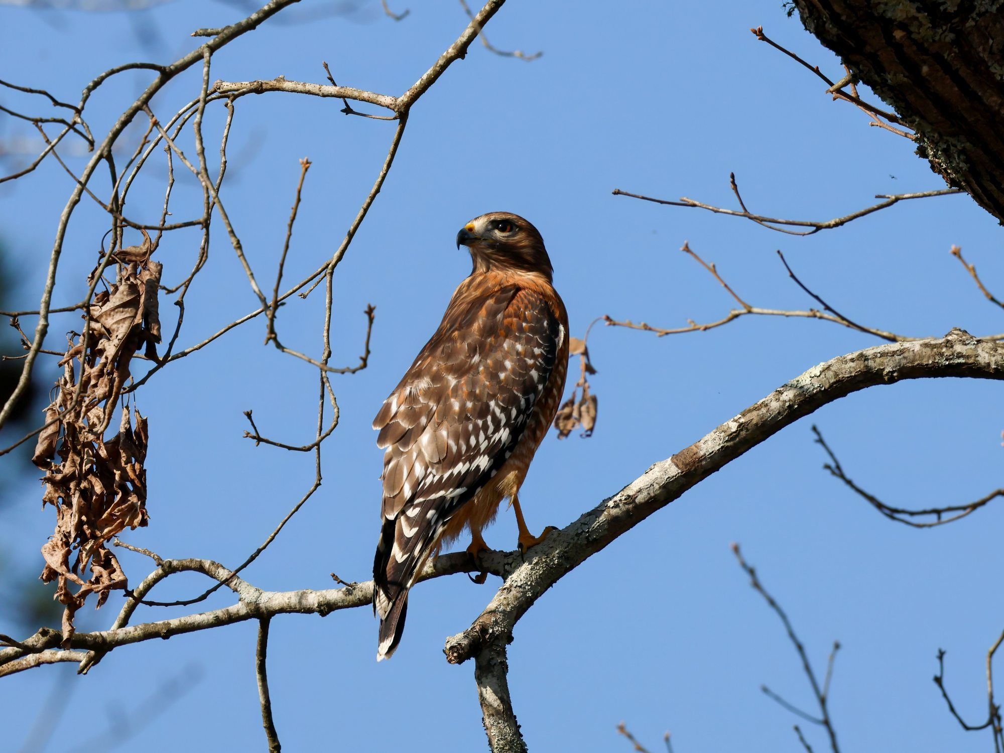 Like this Red-shouldered beauty that swooped through the backyard and landed on an upper branch, pausing just long enough for me to fire off a few shots.