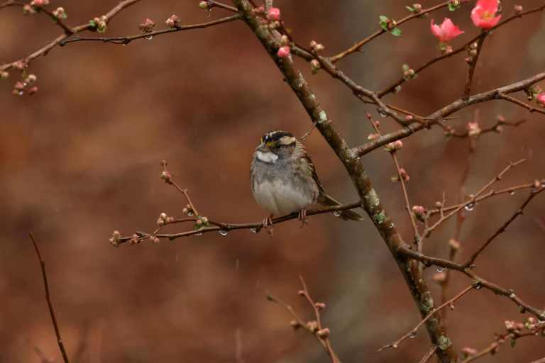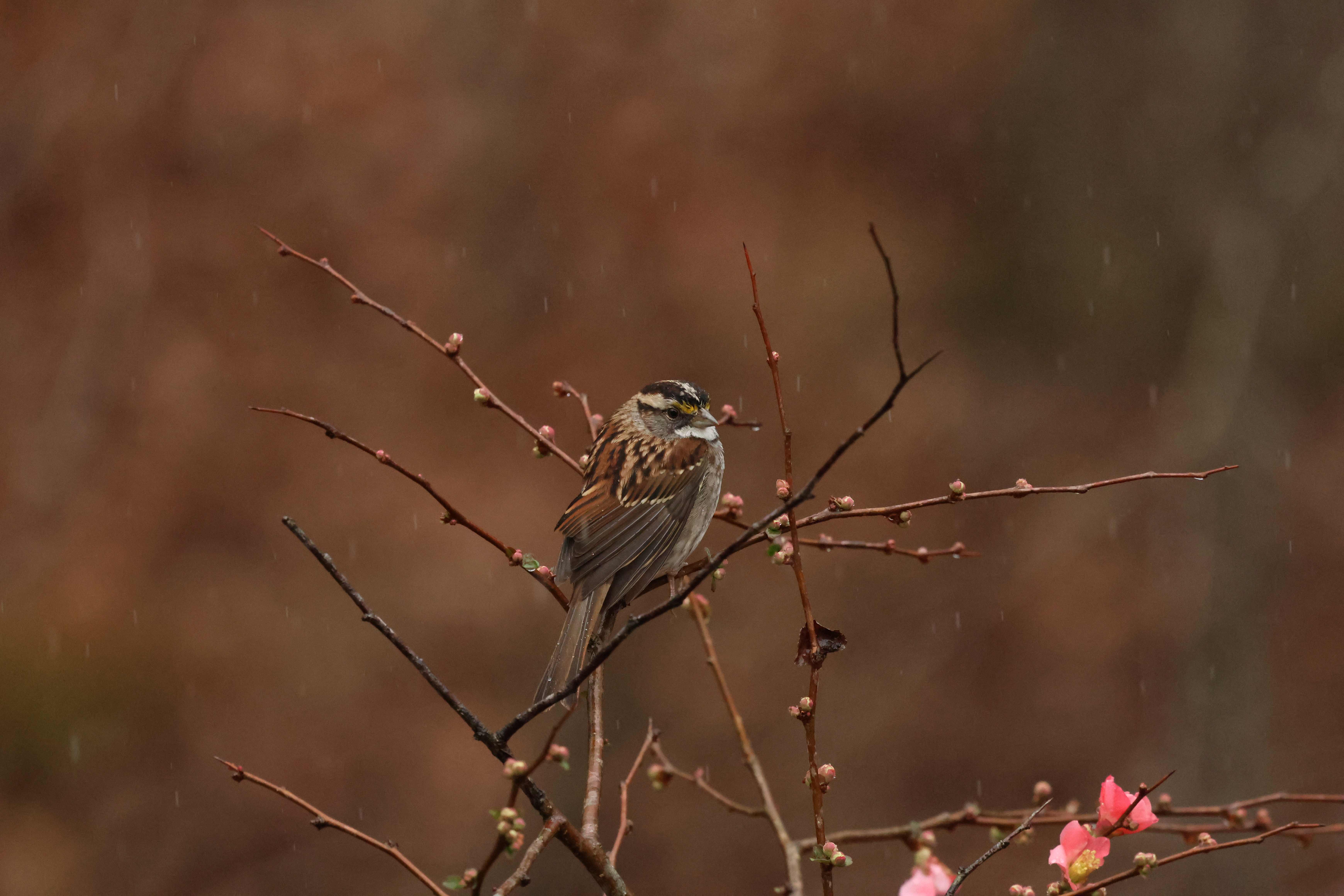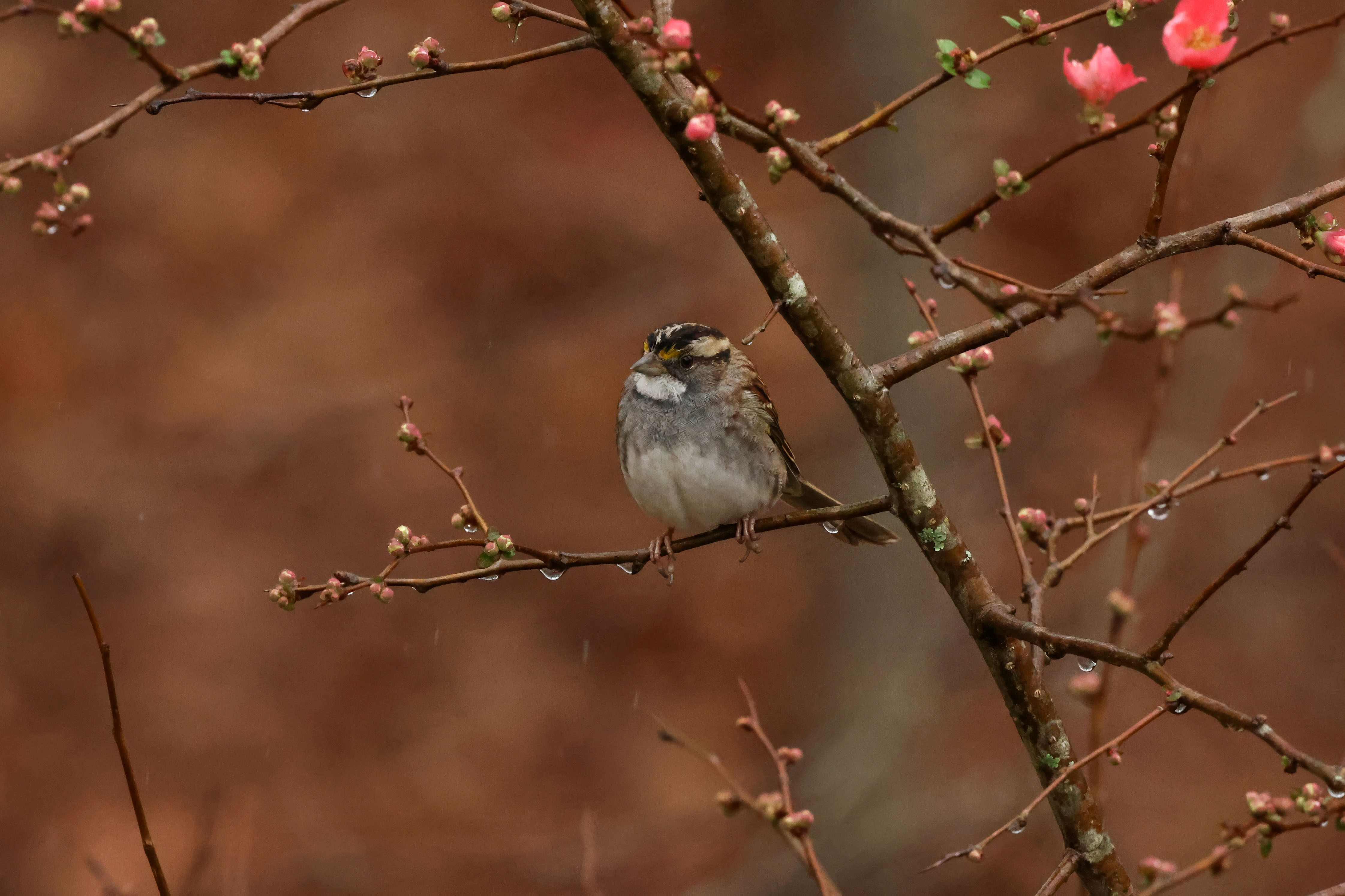 We had a lovely rain the other day, and a handful of White-throated Sparrows were perched in the Quince bush, enjoying a gentle soaking.