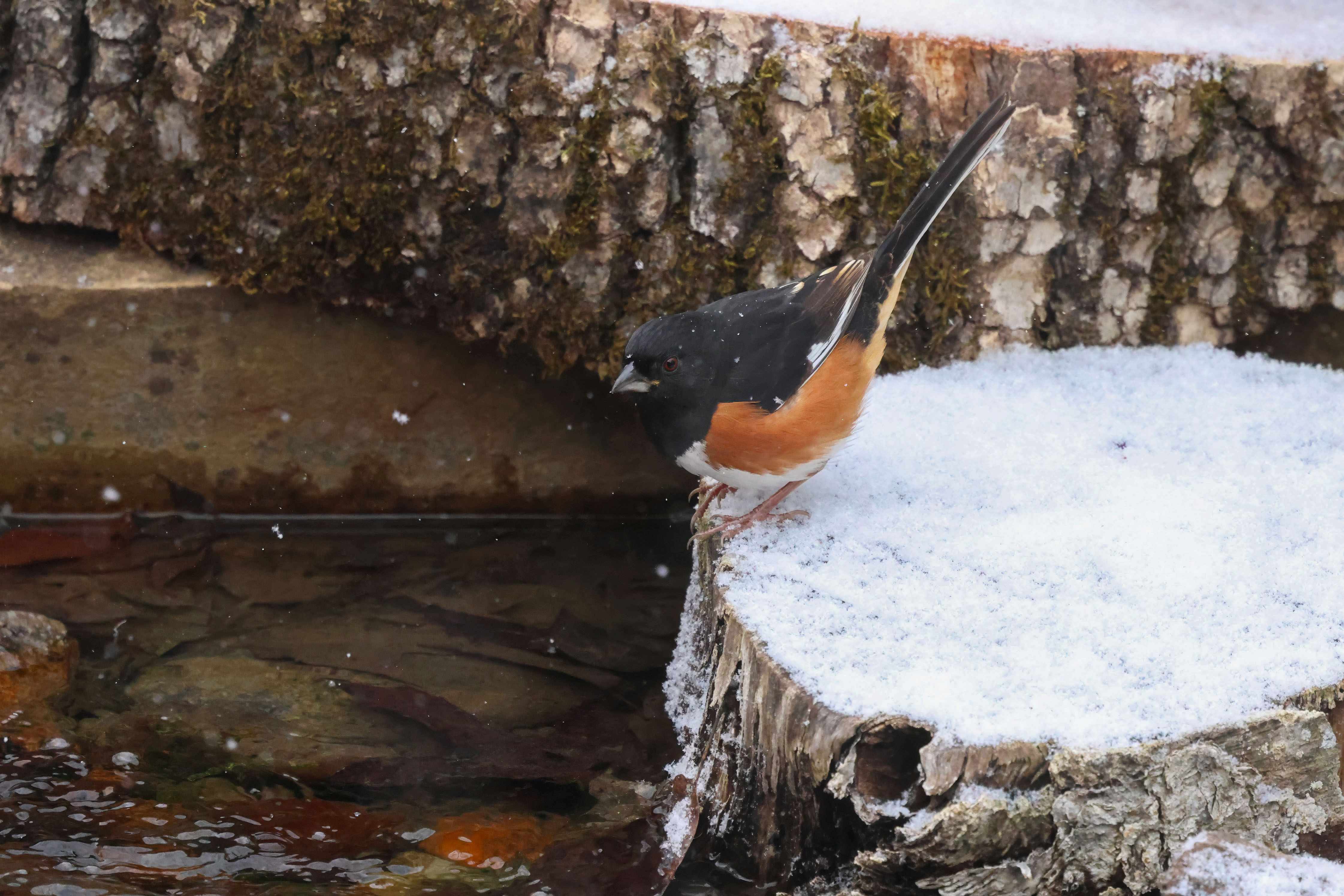 The sound of running water lures a lot of birds in to the backyard, like these beauties below that showed up for a drink.