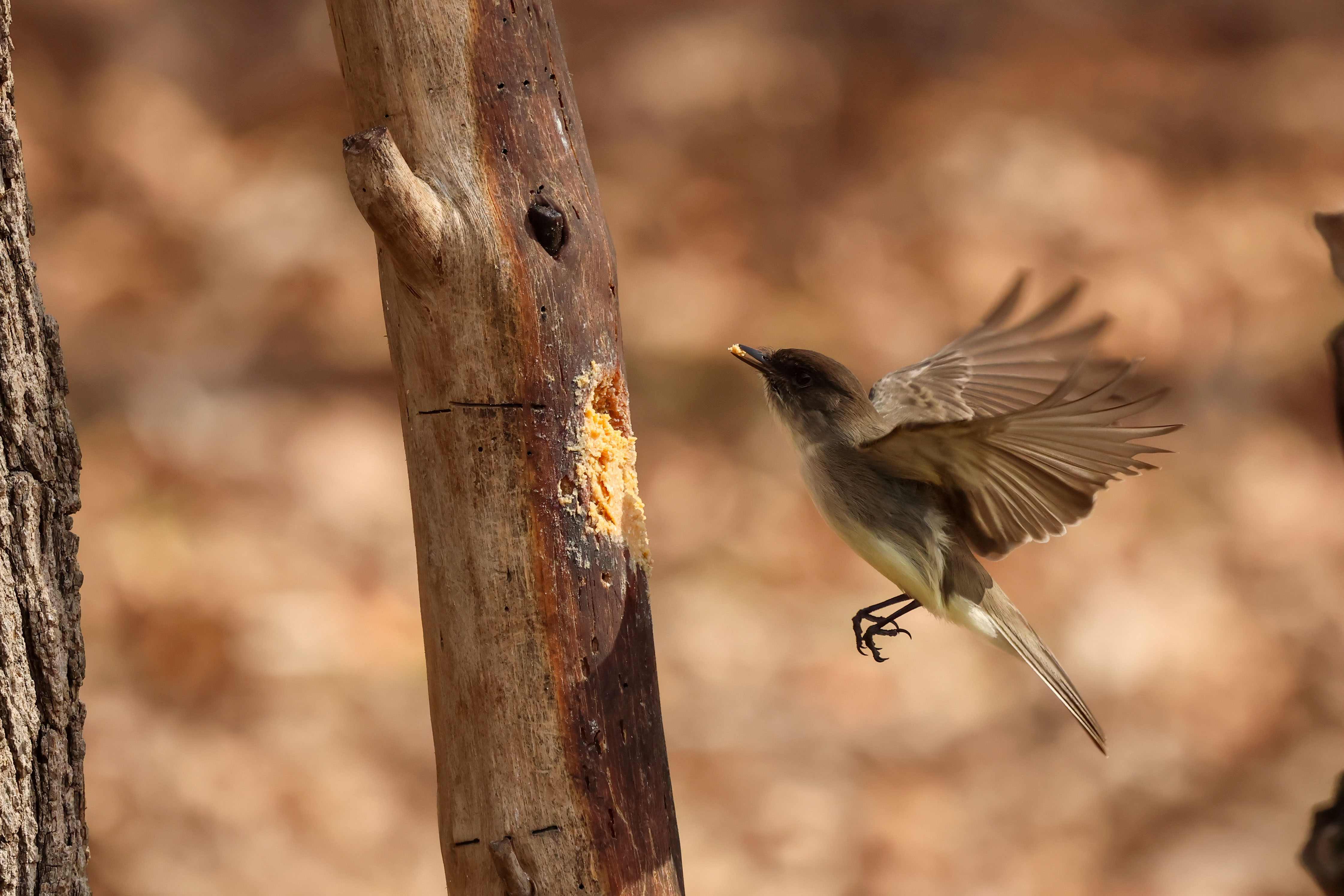 …and as soon as he left, an Eastern Phoebe swooped in for a bite.