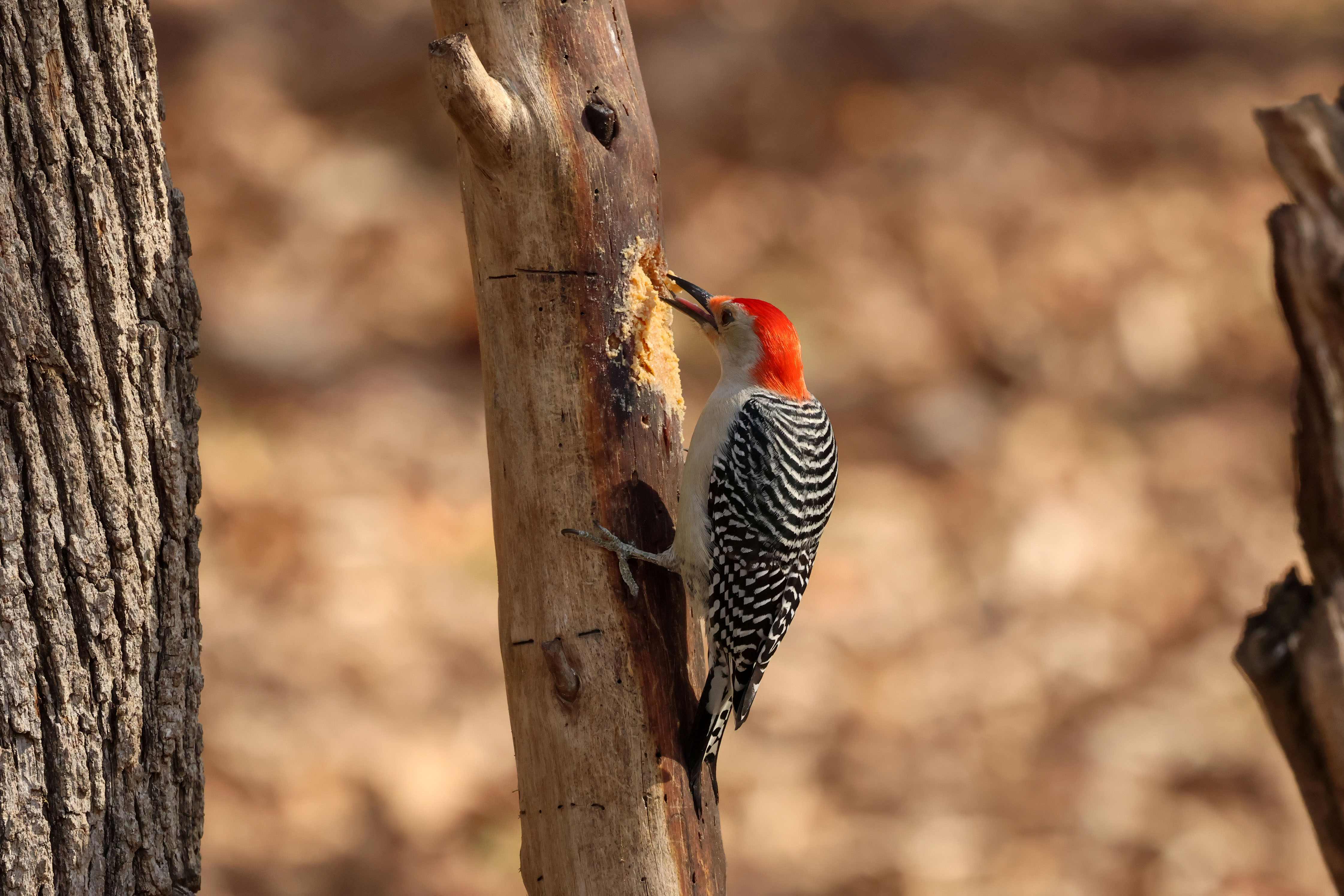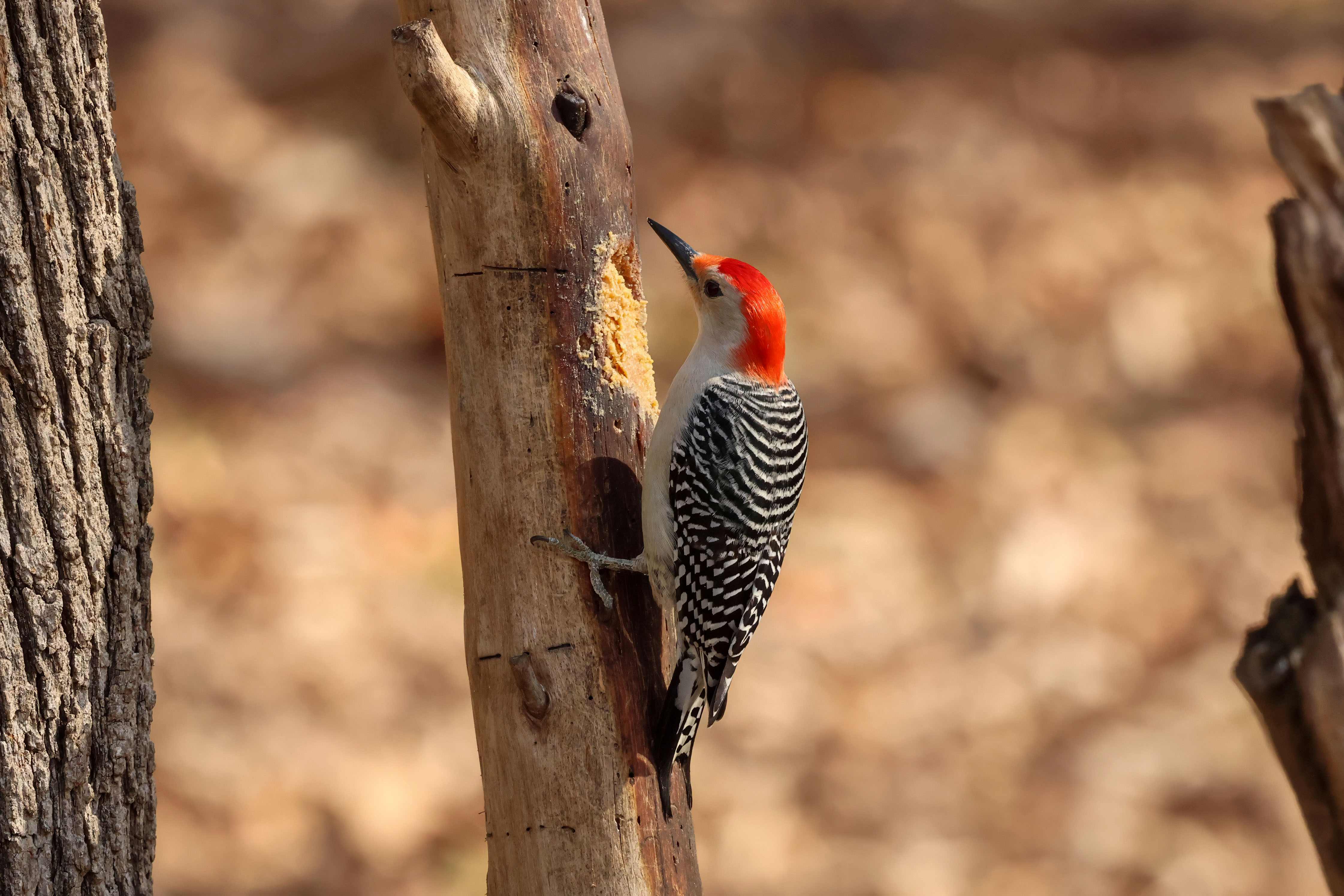 The other day, this Red-bellied Woodpecker was helping himself to some of this suet-like spread…