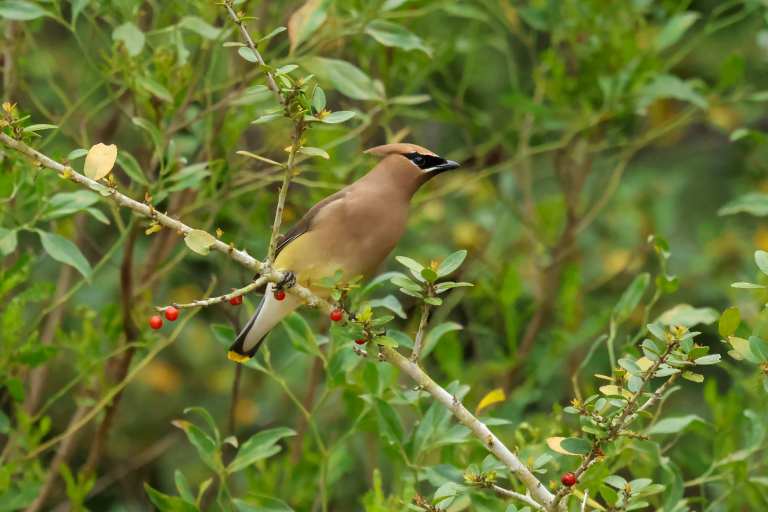 I was hoping to get a shot of one of these beautiful birds with a berry in its beak, but alas, the speed of the camera operator couldn’t compete with the speed of the berry bandit!